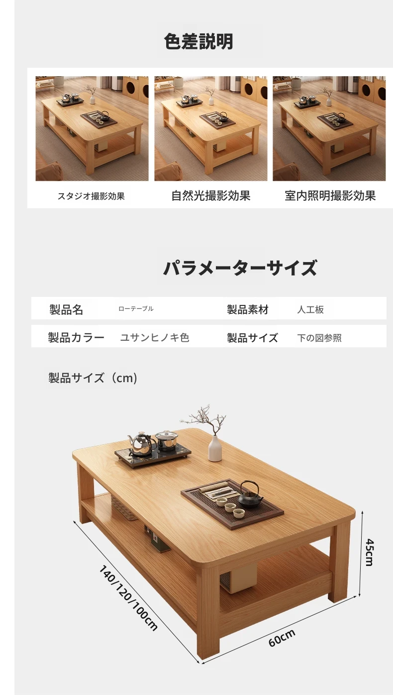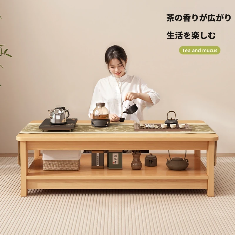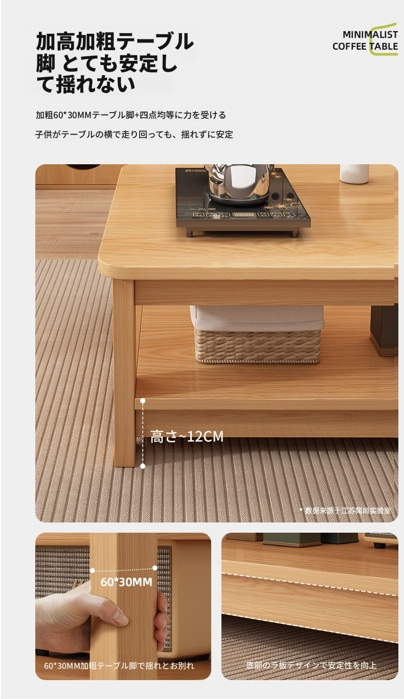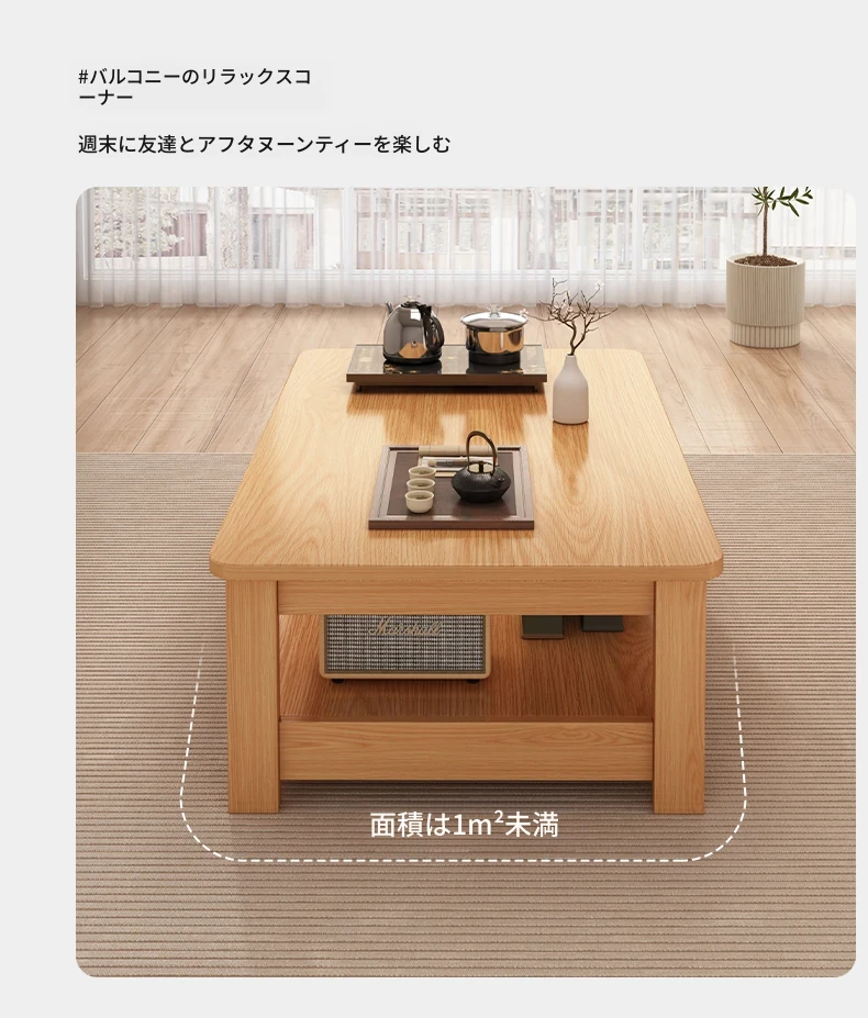 2025年新作!おしゃれな原木風の移動可能な四角いティーテーブル。リビングや小型住宅に最適で、バルコニーにもぴったりなシンプルなデザイン。快適な空間を演出する、あなたの生活に彩りを加えます!