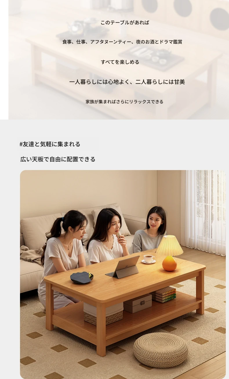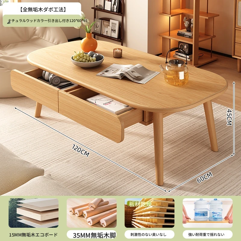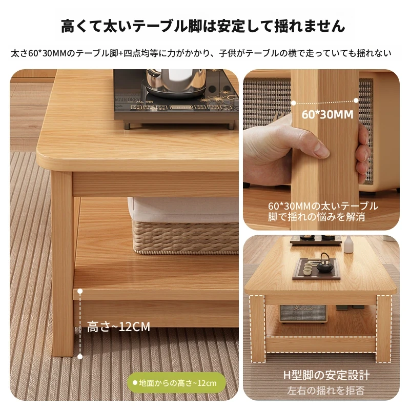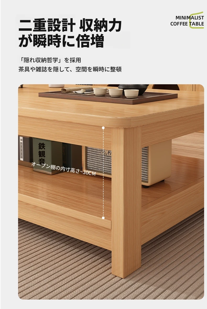 2025年新作!おしゃれな原木風の移動可能な四角いティーテーブル。リビングや小型住宅に最適で、バルコニーにもぴったりなシンプルなデザイン。快適な空間を演出する、あなたの生活に彩りを加えます!