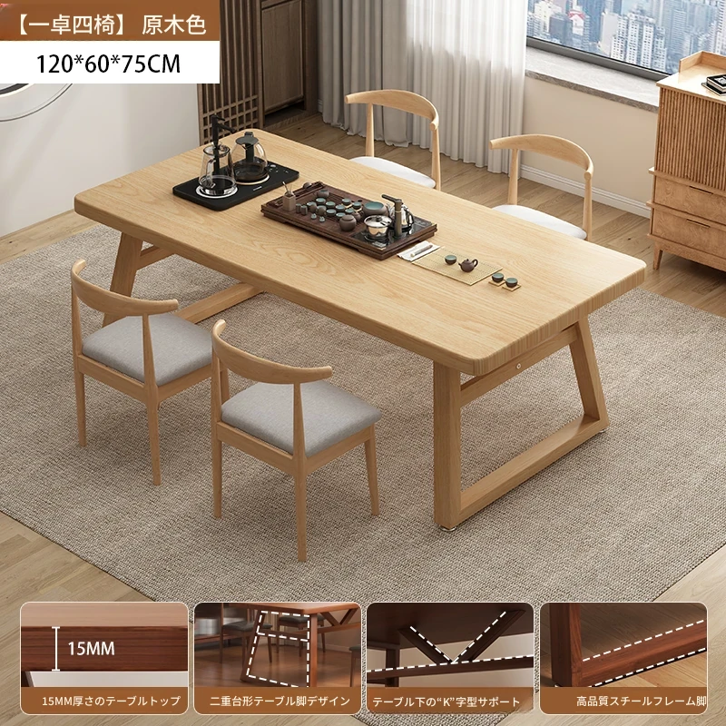 【一桌4椅♥鉄製牛角椅】ナチュラルウッドカラー120*60