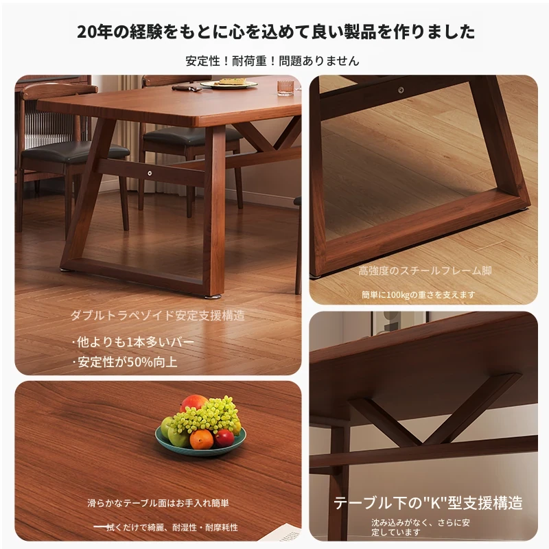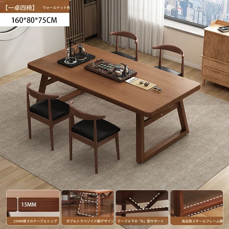 【一桌4椅♥鉄製牛角椅】ウォールナットカラー160*80