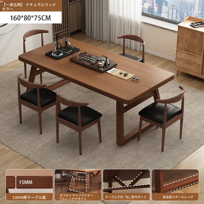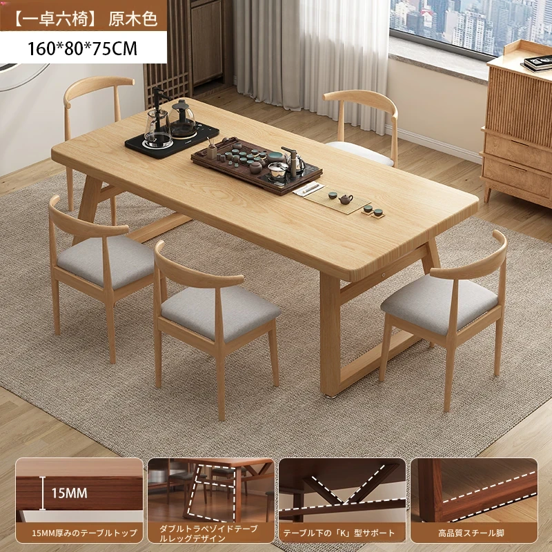 【一桌6椅♥鉄製牛角椅】ナチュラルウッドカラー160*80