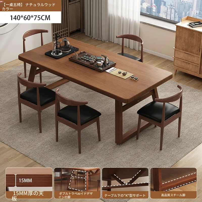【一桌6椅♥鉄製牛角椅】ナチュラルウッドカラー140*60