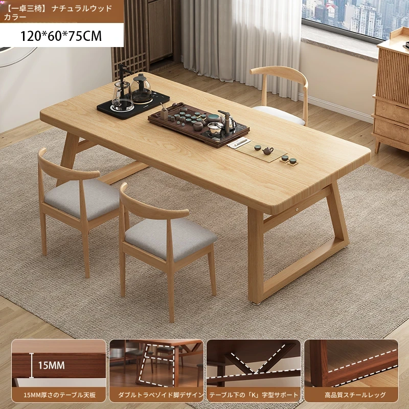 【一桌三椅♥鉄製牛角椅】ナチュラルウッドカラー120*60