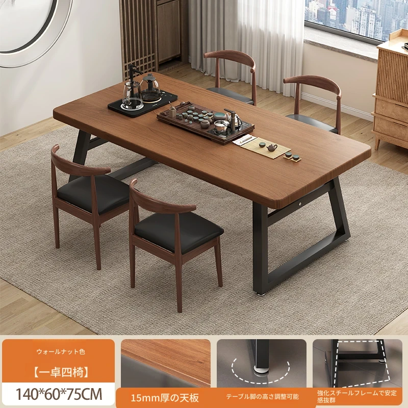 【一桌4椅♥鉄製牛角椅】ウォールナットカラー140*60