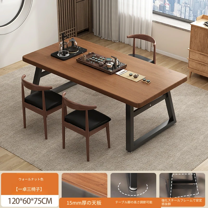 【一桌三椅♥鉄製牛角椅】ウォールナットカラー120*60