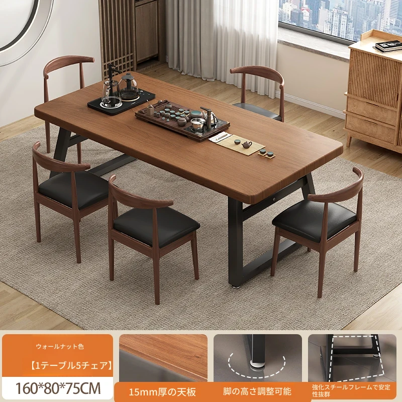 【一桌五椅♥鉄製牛角椅】ウォールナットカラー160*80*75