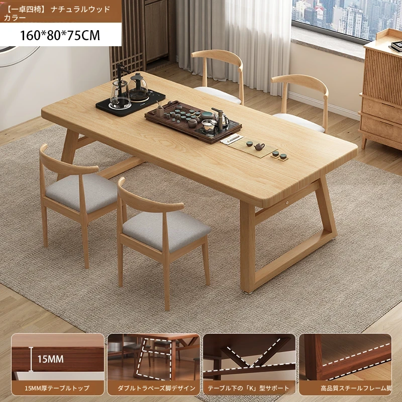 【一桌4椅♥鉄製牛角椅】ナチュラルウッドカラー160*80