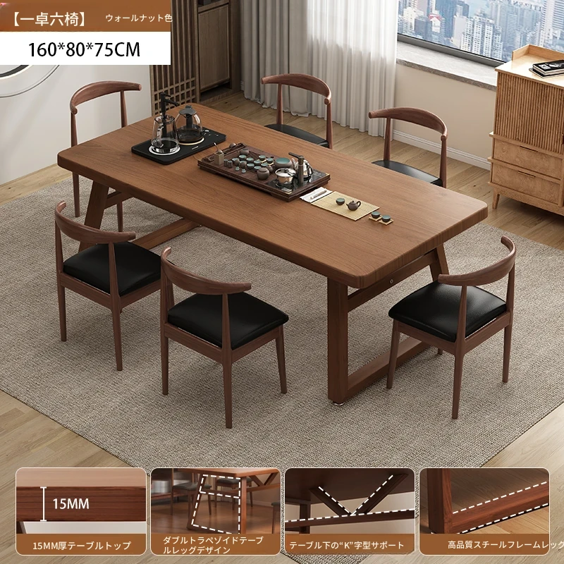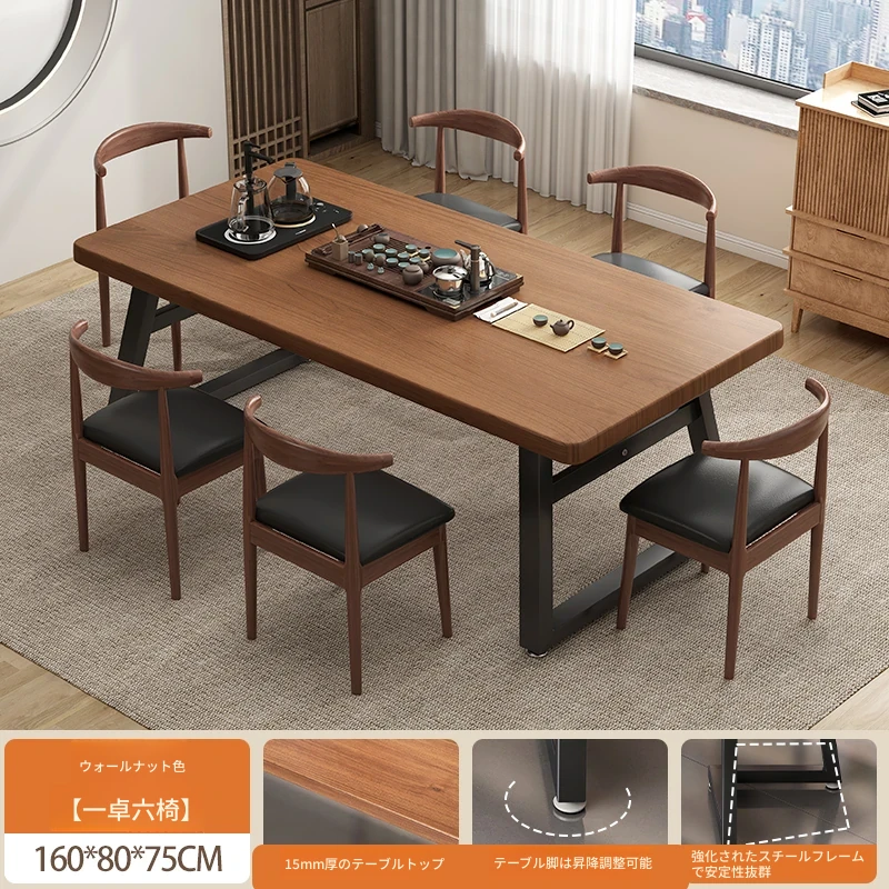 【一桌6椅♥鉄製牛角椅】ウォールナットカラー160*80