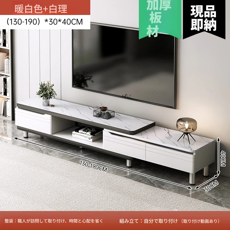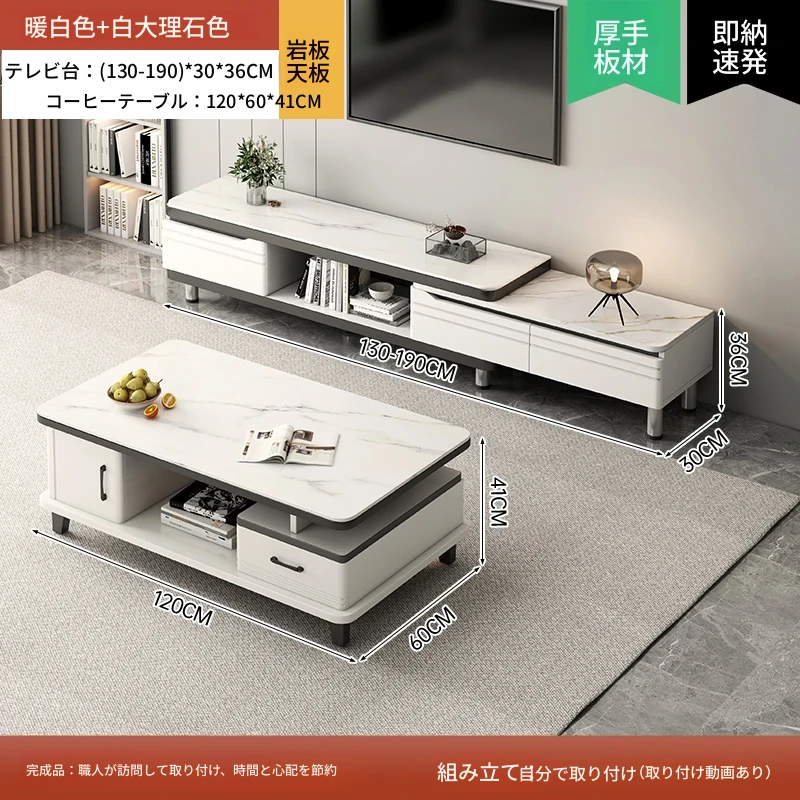 【石板】伸縮(130-190)cm テレビ台+1.2メートル石板コーヒーテーブル