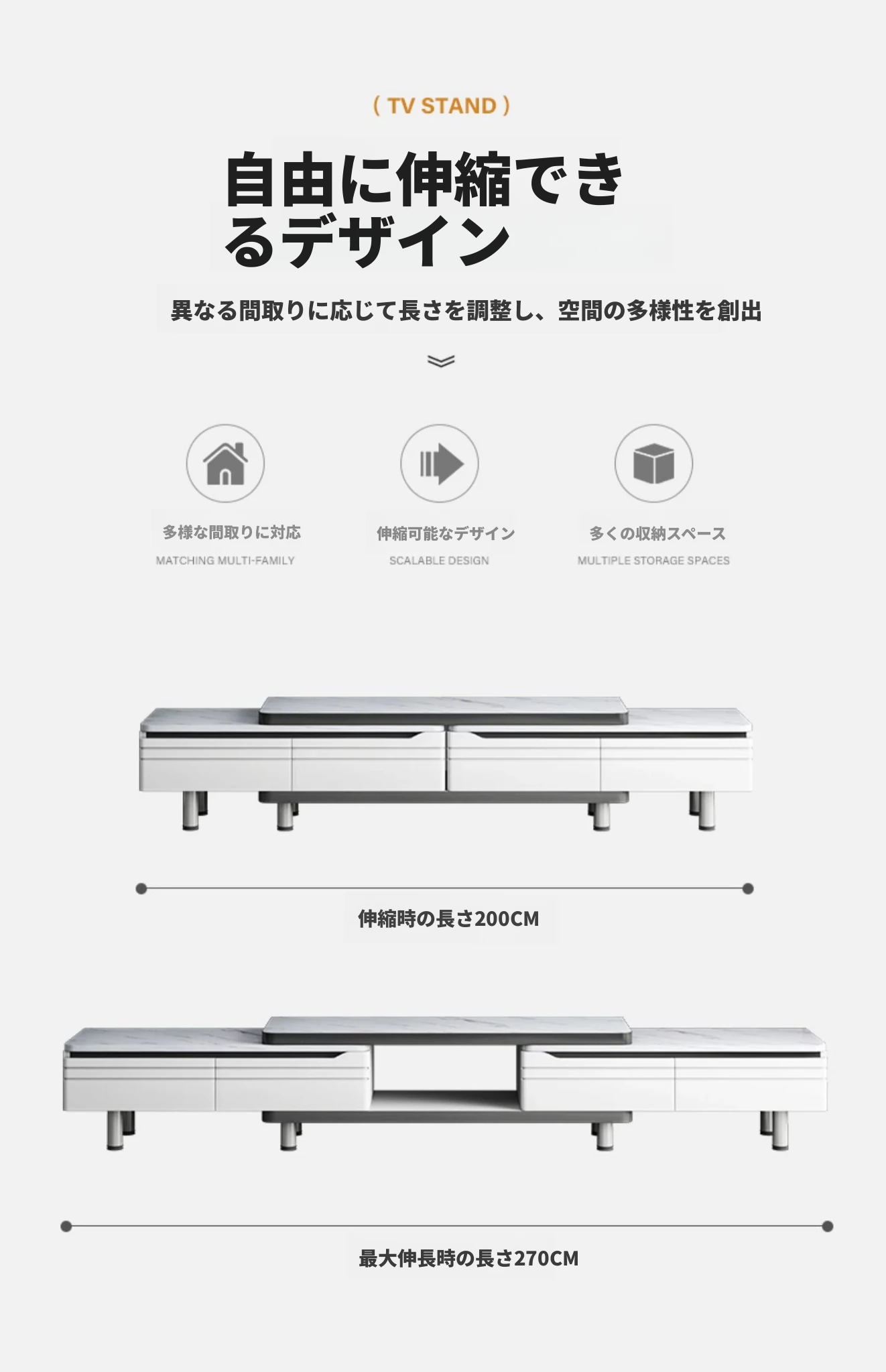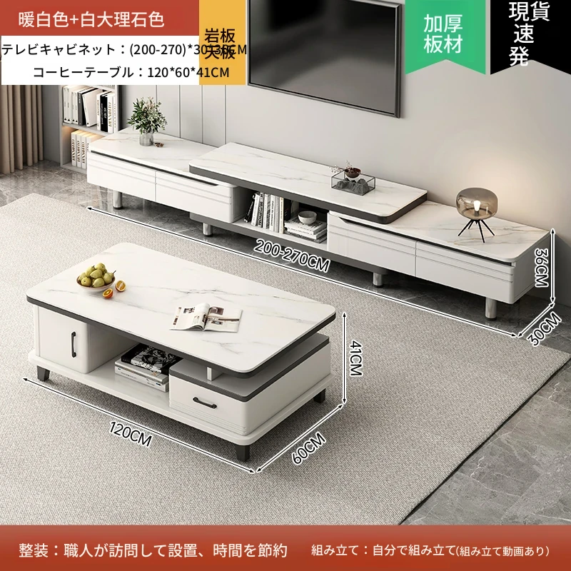 【石板】伸縮(200-270)cm テレビ台+1.2メートル石板コーヒーテーブル