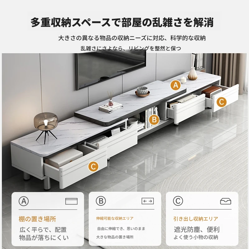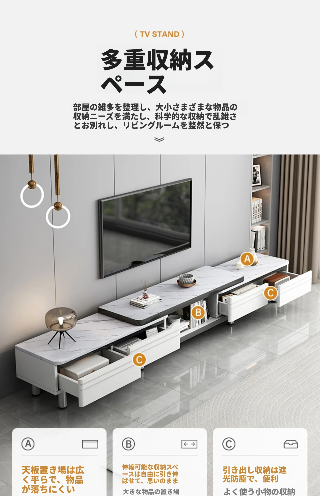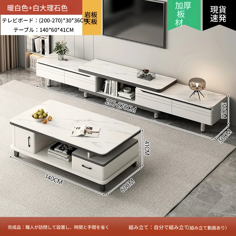 【石板】伸縮(200-270)cm テレビ台+1.4メートル石板コーヒーテーブル