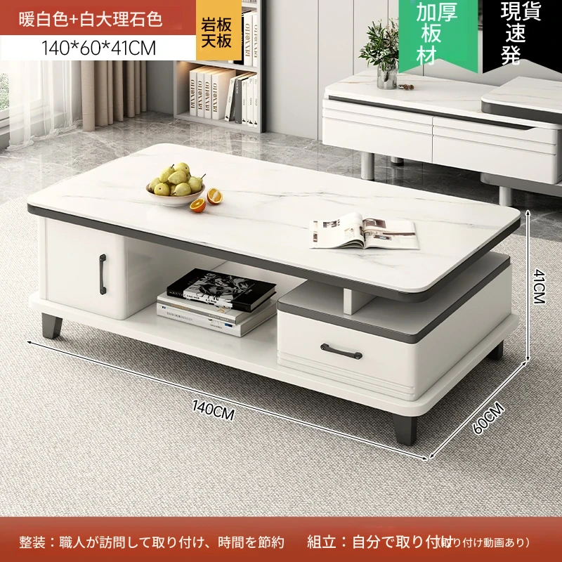 【石板コーヒーテーブル】白い大理石模様 140*60*41cm