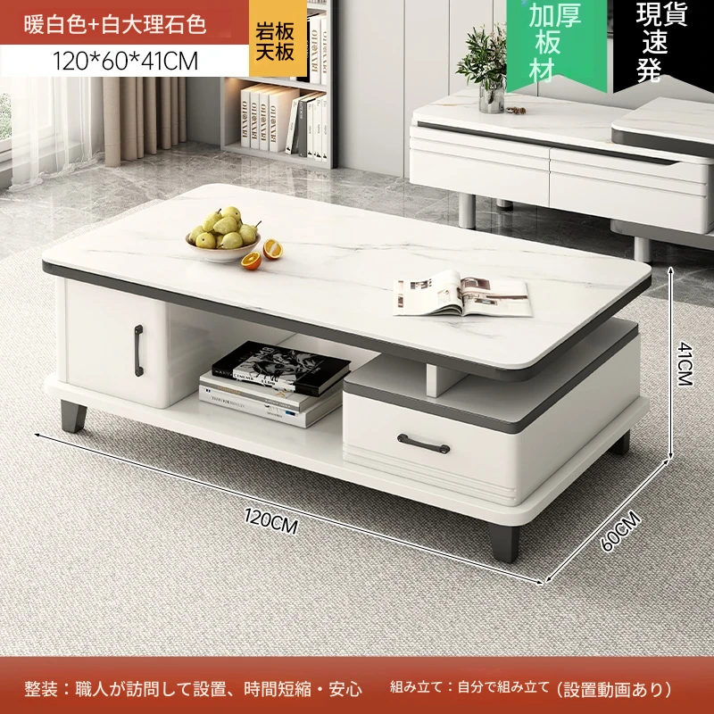 【石板コーヒーテーブル】白い大理石模様 120*60*41cm