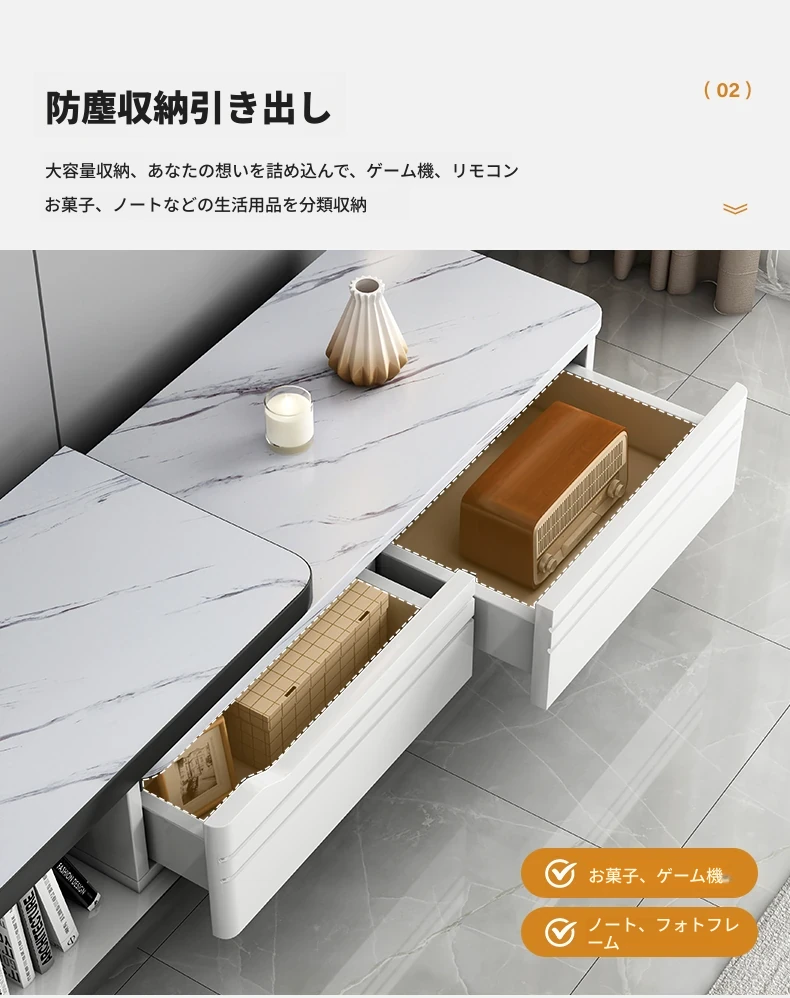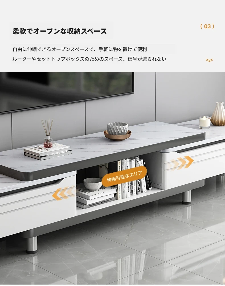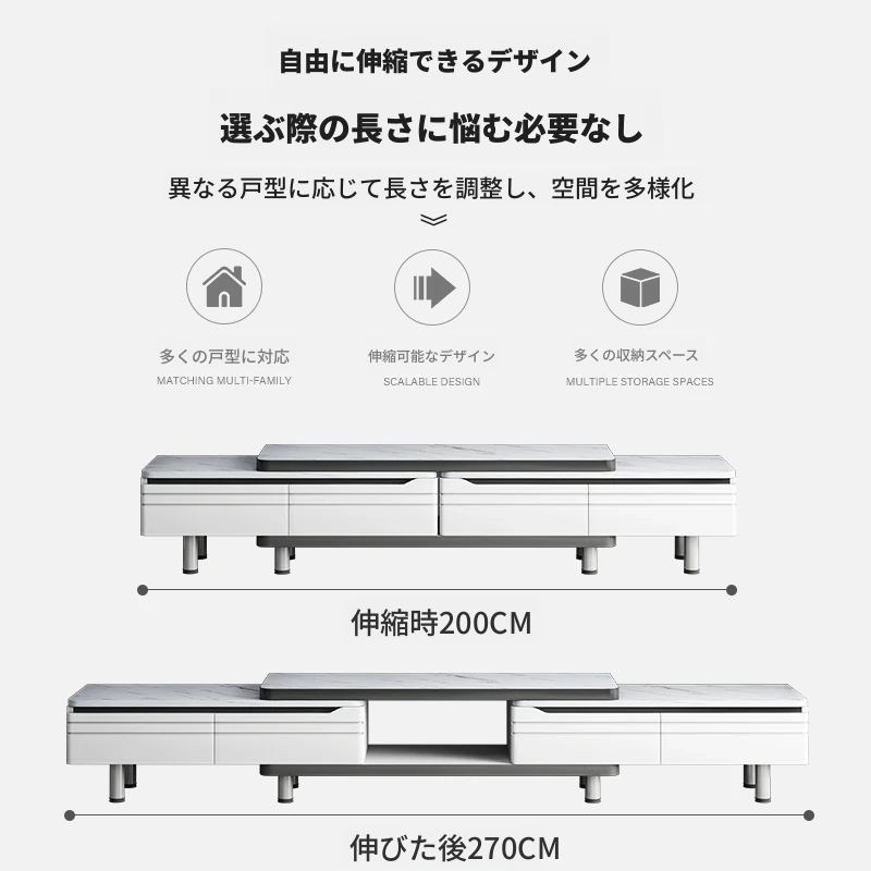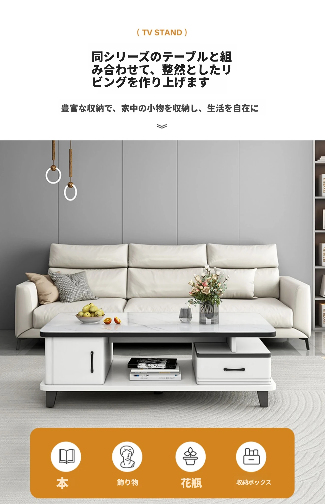 2025年新作!現代的シンプルデザインのリビング用テレビキャビネット。小型住宅にぴったりの伸縮式コーヒーテーブル&テレビ台のコンビネーションで、スペースを有効活用!おしゃれで機能的なインテリアを実現します。