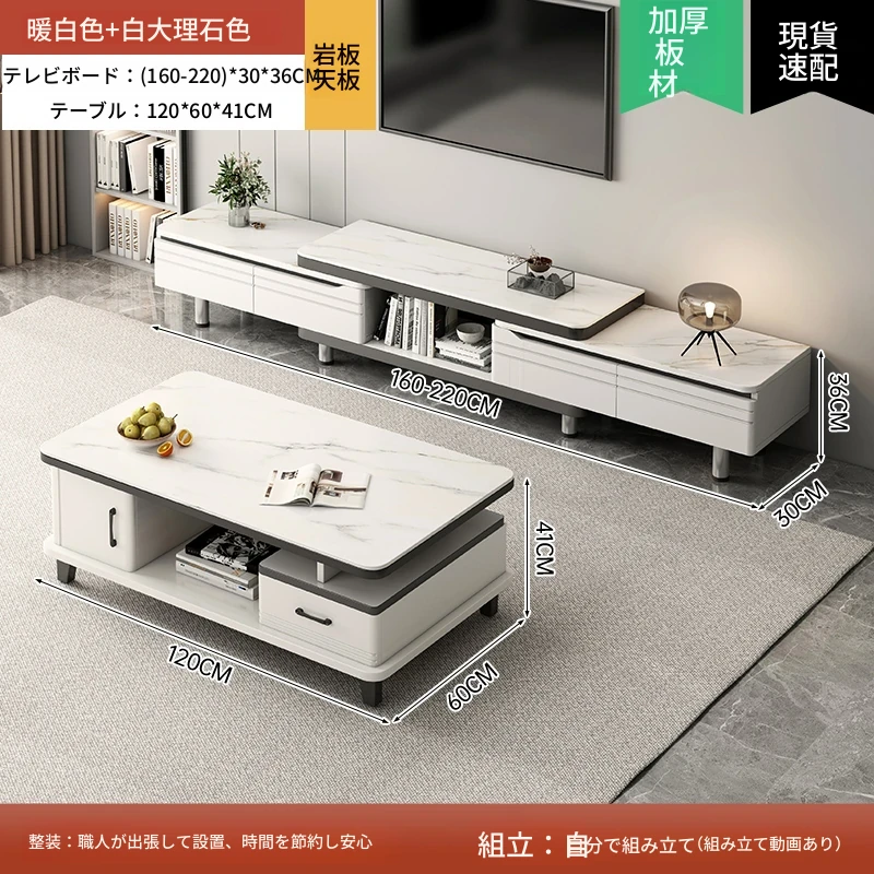 【石板】伸縮(160-220)cm テレビ台+1.2メートル石板コーヒーテーブル