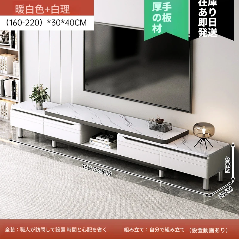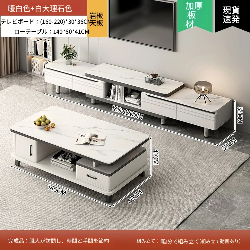 【石板】伸縮(160-220)cm テレビ台+1.4メートル石板コーヒーテーブル