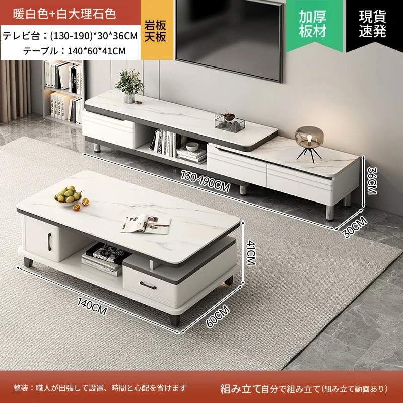 【石板】伸縮(130-190)cm テレビ台+1.4メートル石板コーヒーテーブル