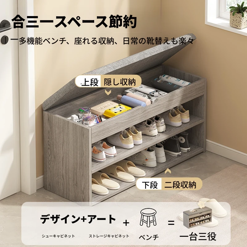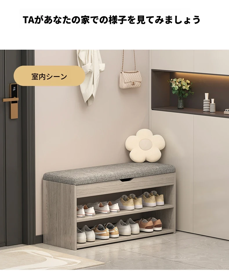2025年新作!スタイリッシュな壁付け靴収納キャビネット - 室内にぴったりのシンプルなデザインで、座れる靴ラック。おしゃれで機能的な玄関収納、快適な空間を演出します!