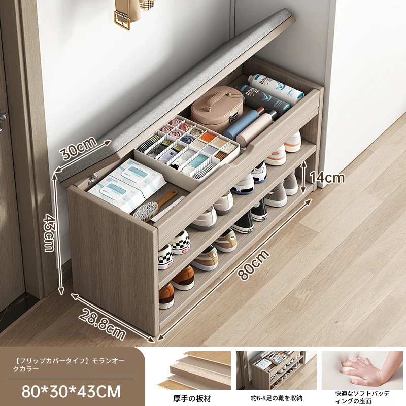 【ダブルレイヤーフリップ】モランオークカラー80*30*43cm アップグレードパーティクルボード