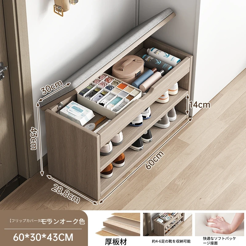 【ダブルレイヤーフリップ】モランオークカラー60*30*43cm アップグレードパーティクルボード