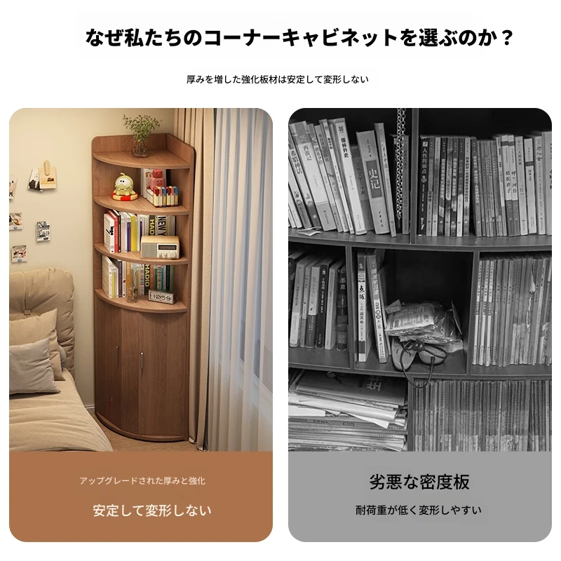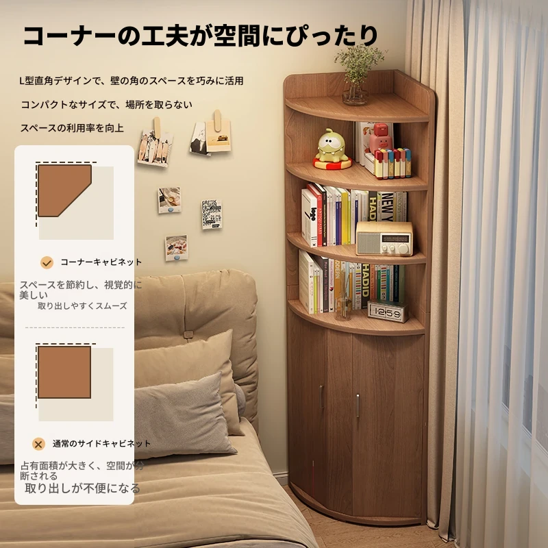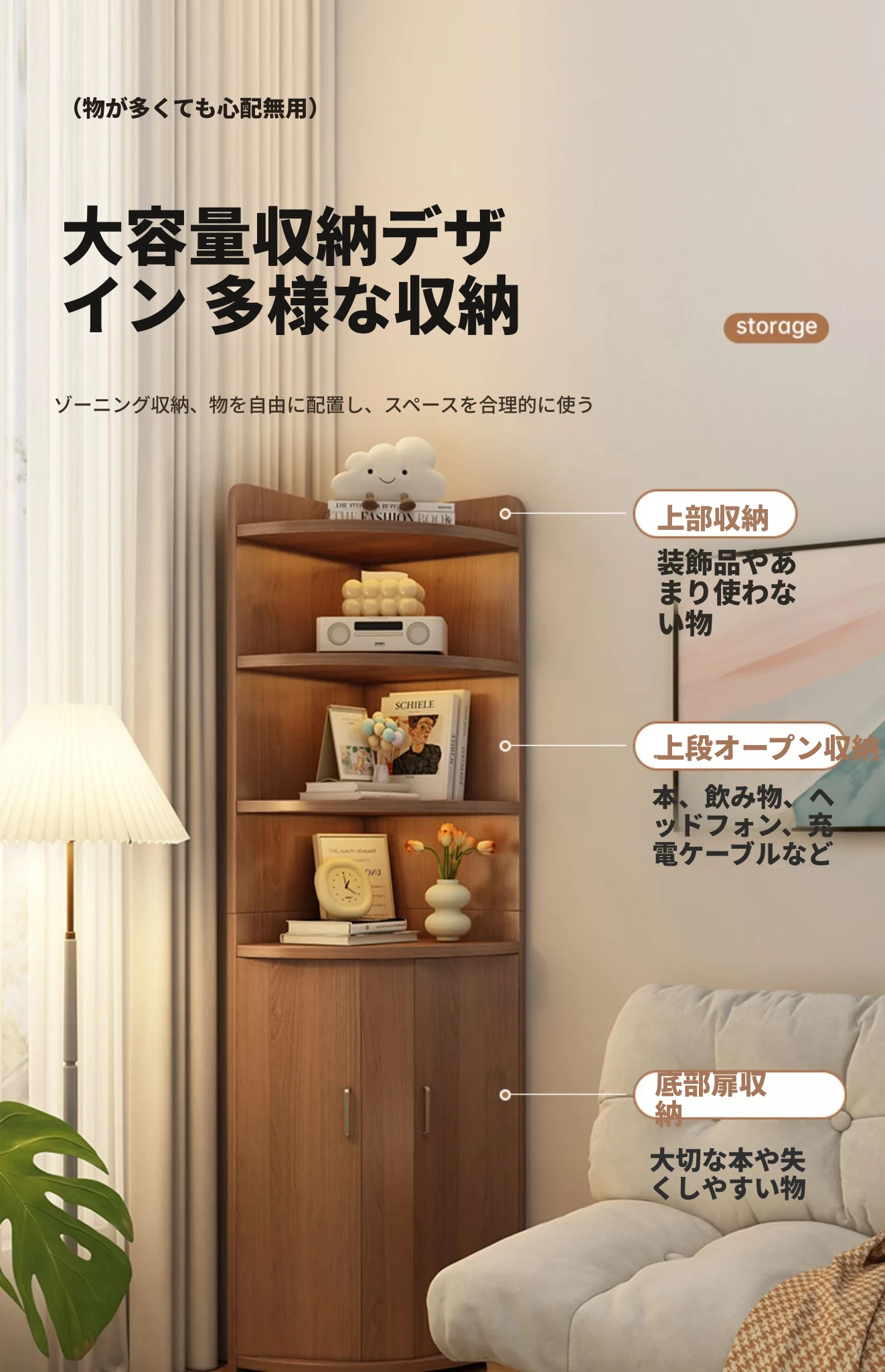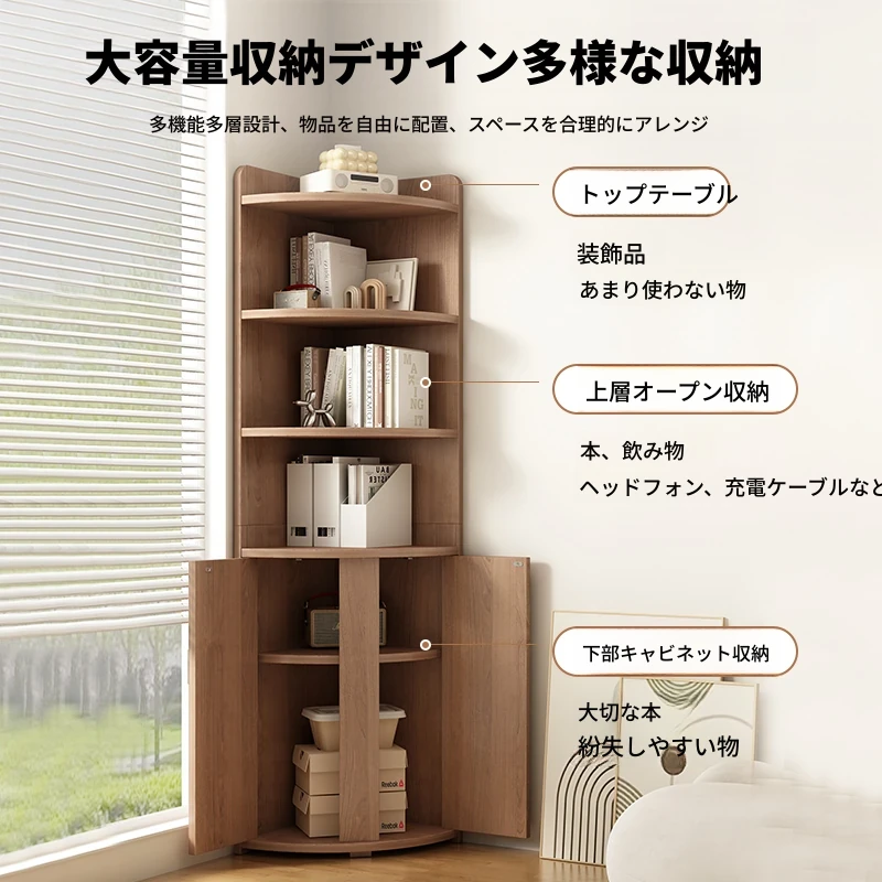 角にぴったり!2025年新作・三角形収納キャビネット|リビングに最適なコーナーラック・スペースを有効活用してすっきり整理整頓!