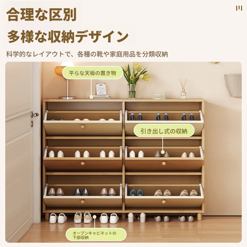 2025新款超薄翻斗シューズキャビネット!玄関にぴったりのスタイリッシュなデザインで、壁にぴったりフィット。多層収納で、靴をすっきり整理!家の入口を美しく保つための必需品です。