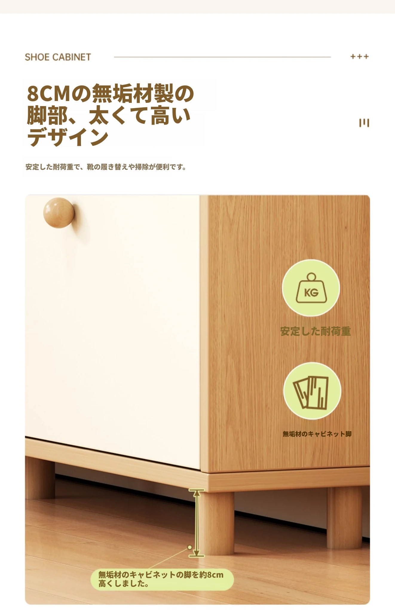 【無垢エコボード超薄型省スペースタイプ】嶼山杉+雲渓ホワイト60*24*100cm