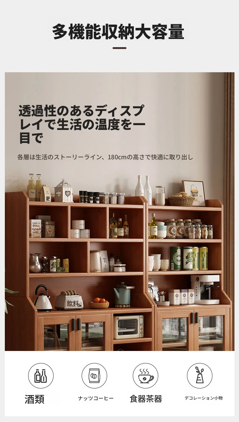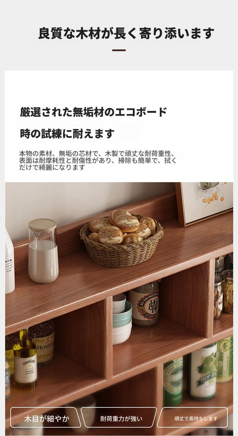 壁に寄せて置ける家用ダイニングサイドボード - 新型2025年モデル!おしゃれで機能的な収納キャビネット、料理やティータイムに最適な備え付け収納。あなたの食卓をさらに引き立てるアイテム!