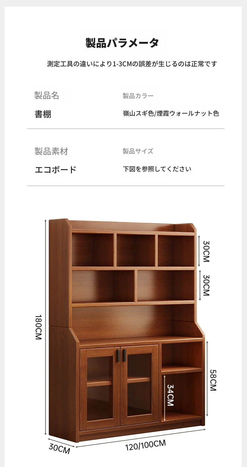 【無垢シェルハンドル☆選定された密度板】120cmチェリーウッドカラー+クリームホワイトキャビネットドア