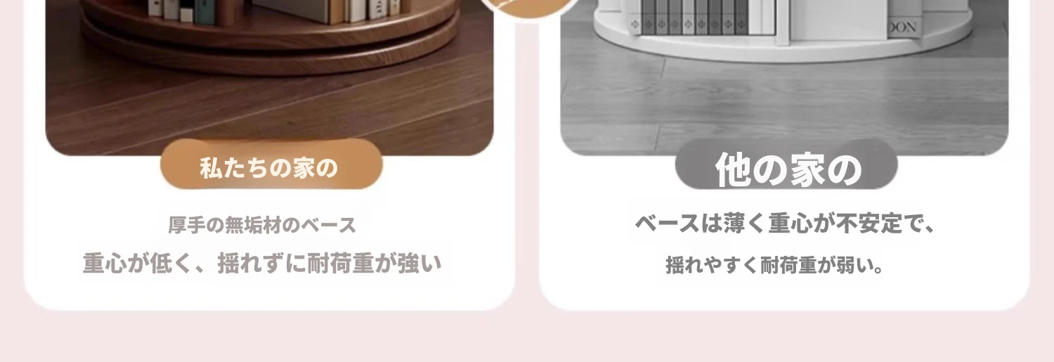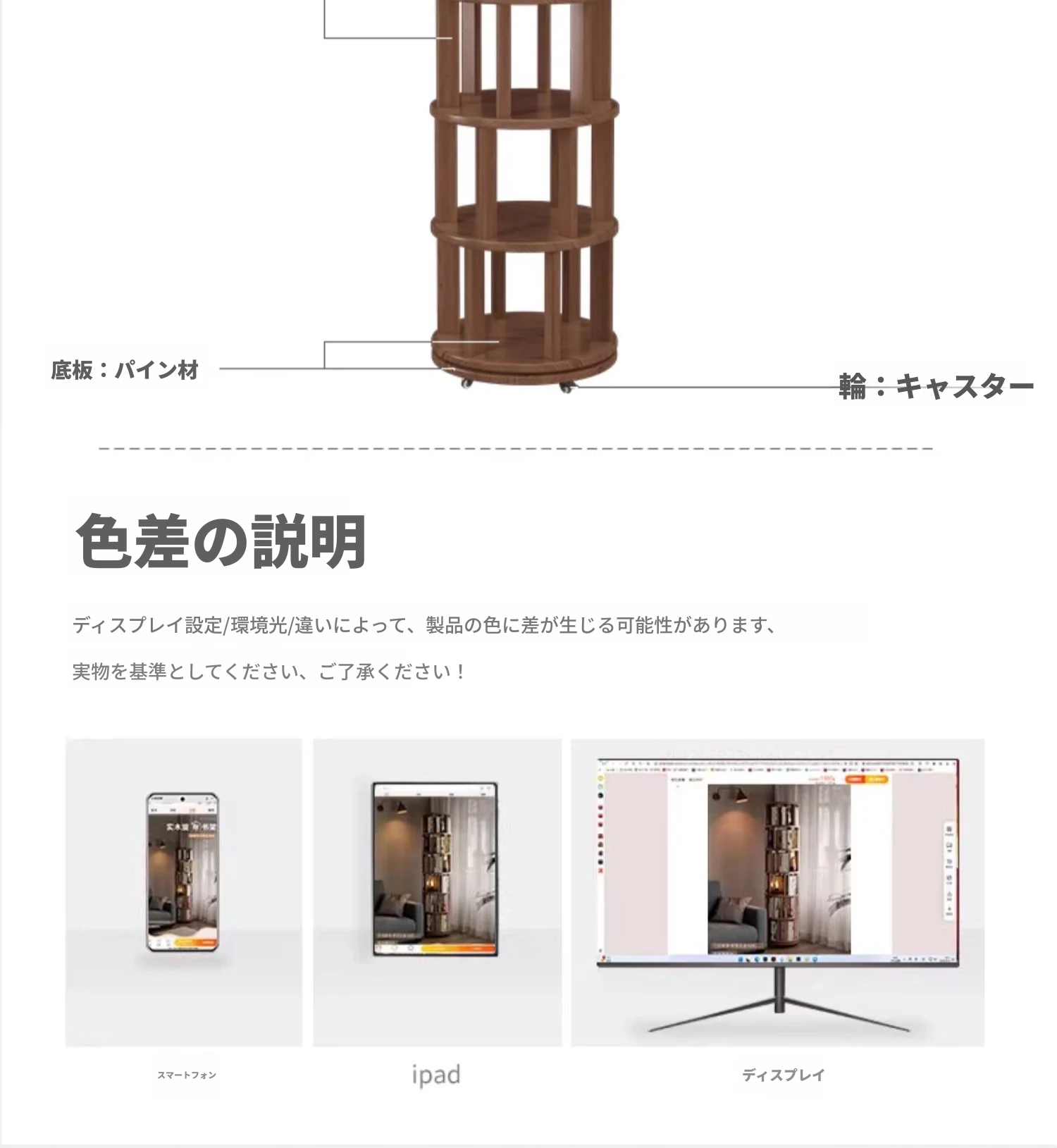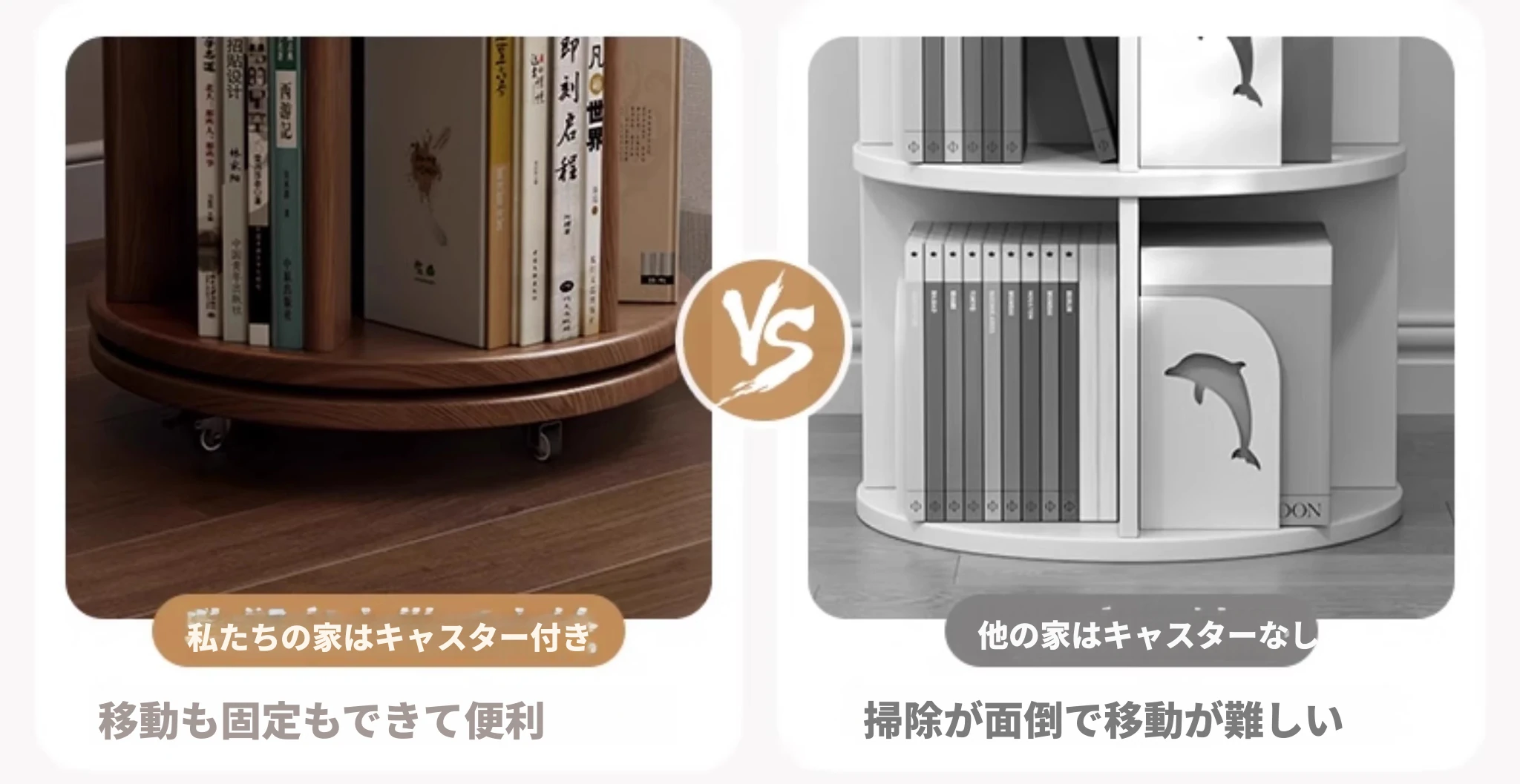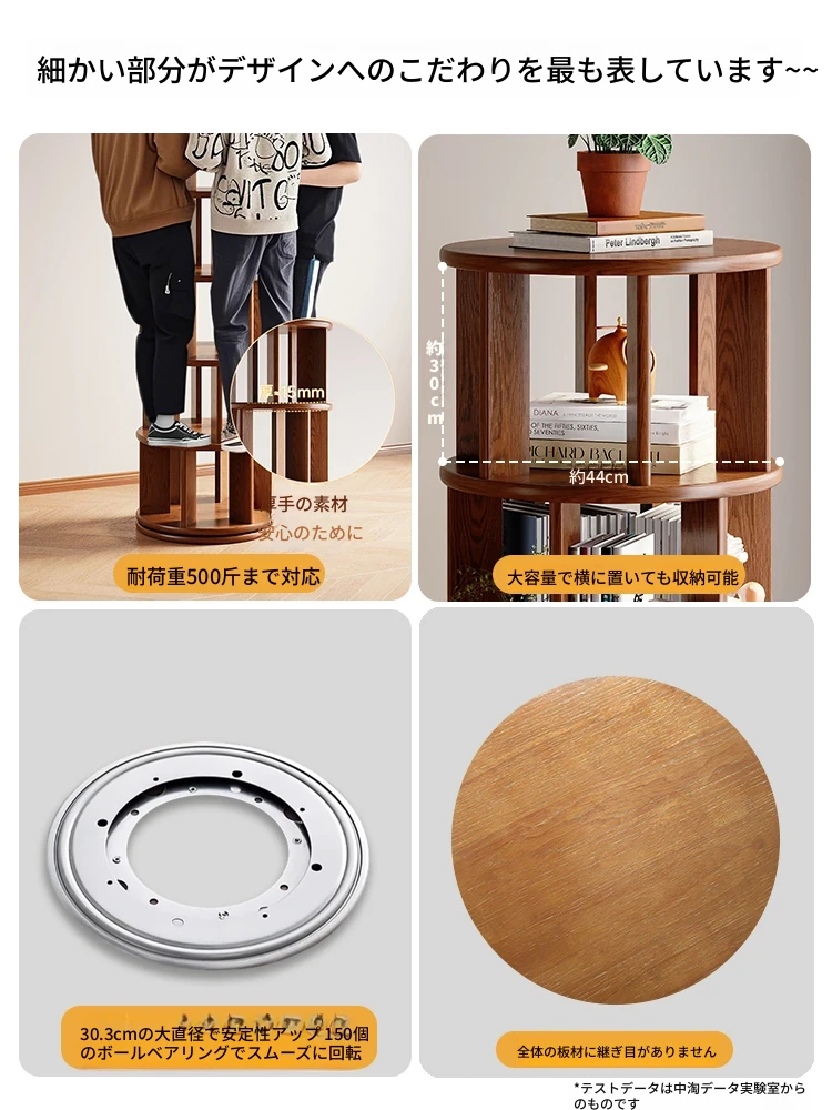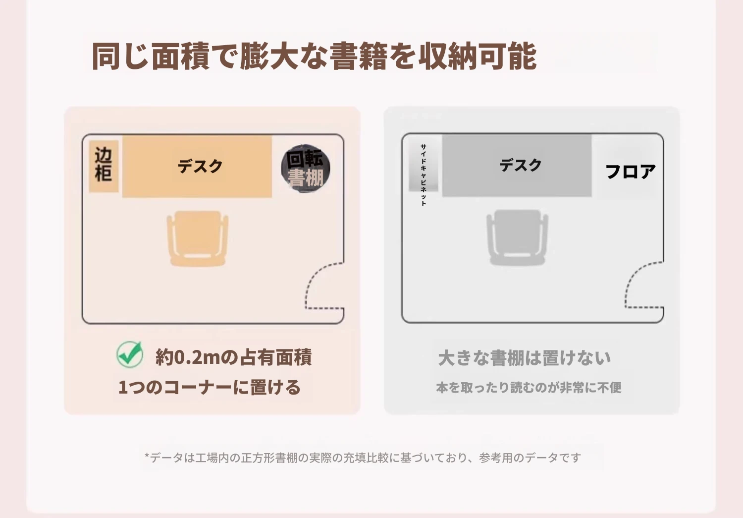 360度回転する無垢材の本棚|壁掛け可能・移動も楽々!リビングの角にぴったりな収納ラックで、スタイリッシュにお部屋を彩ります。