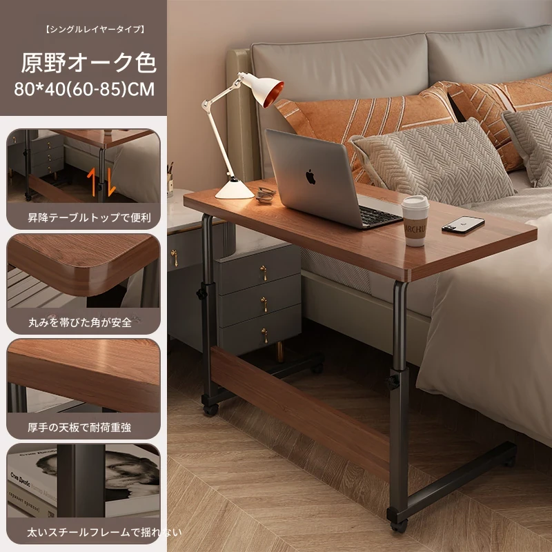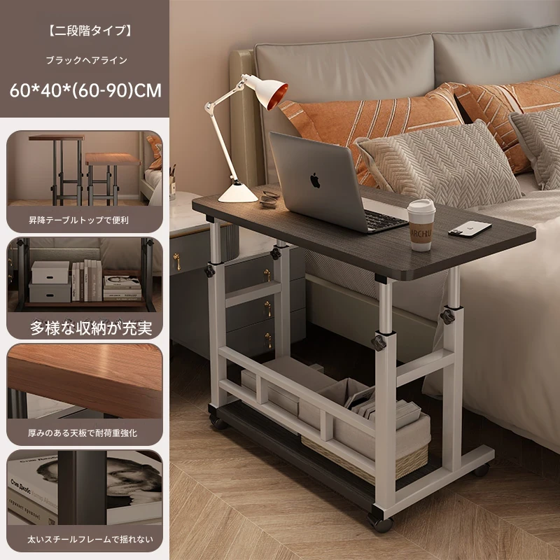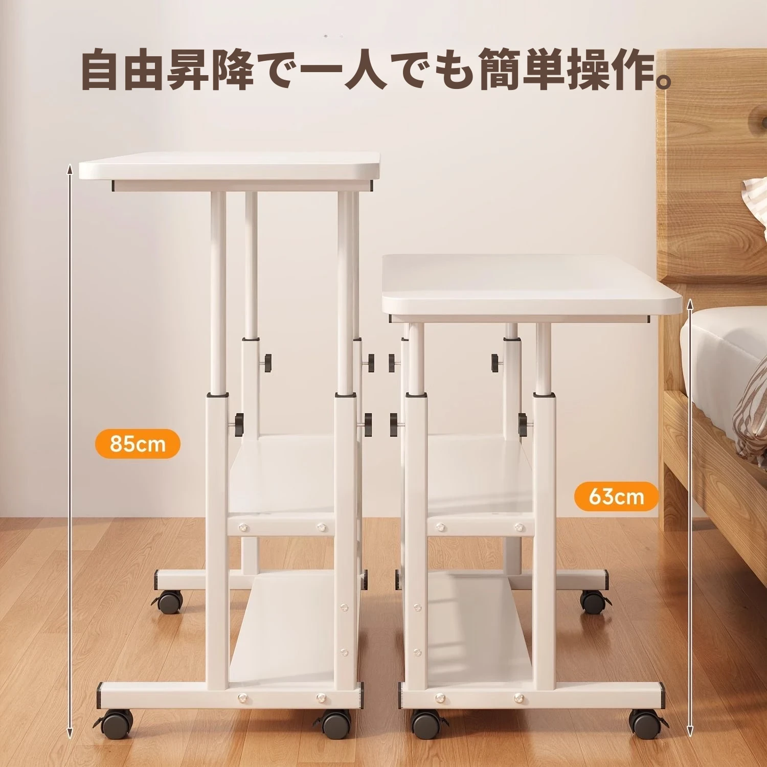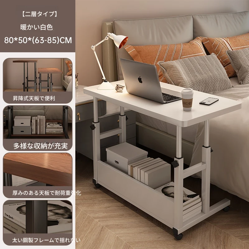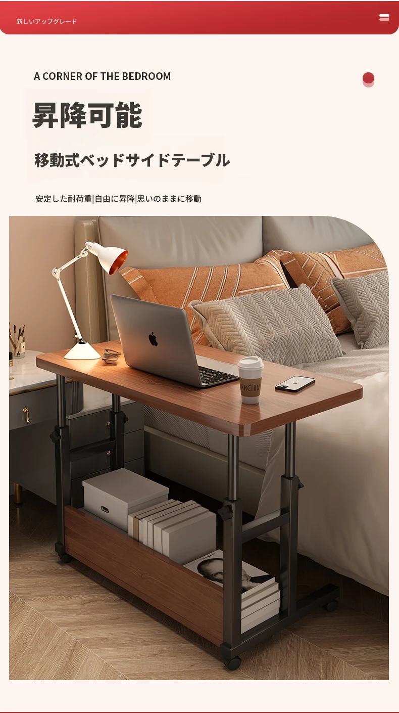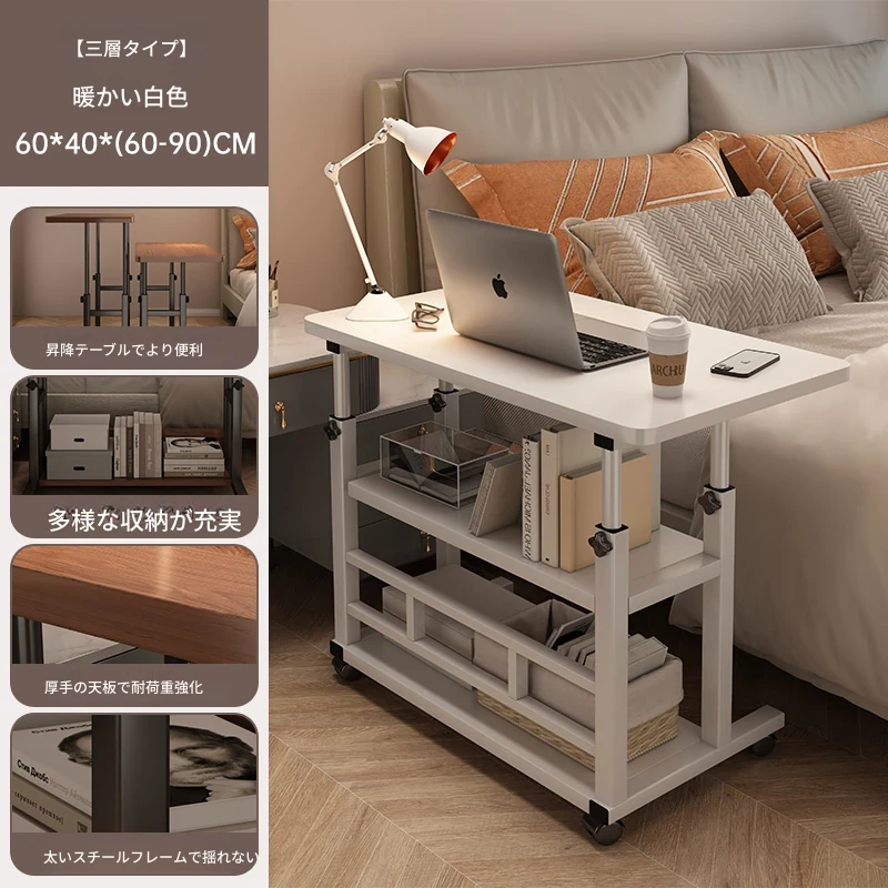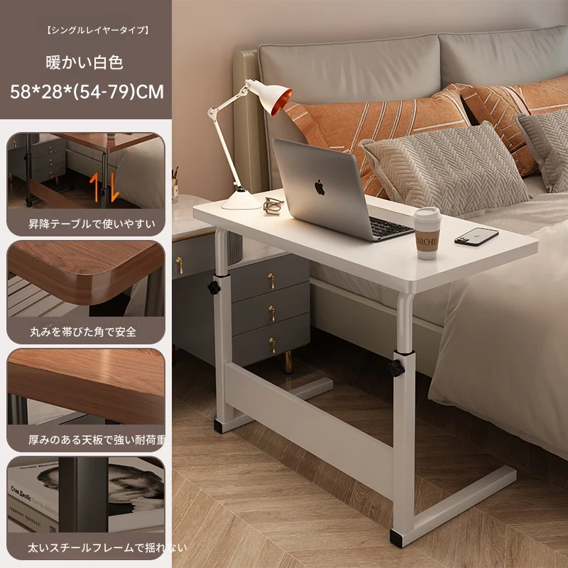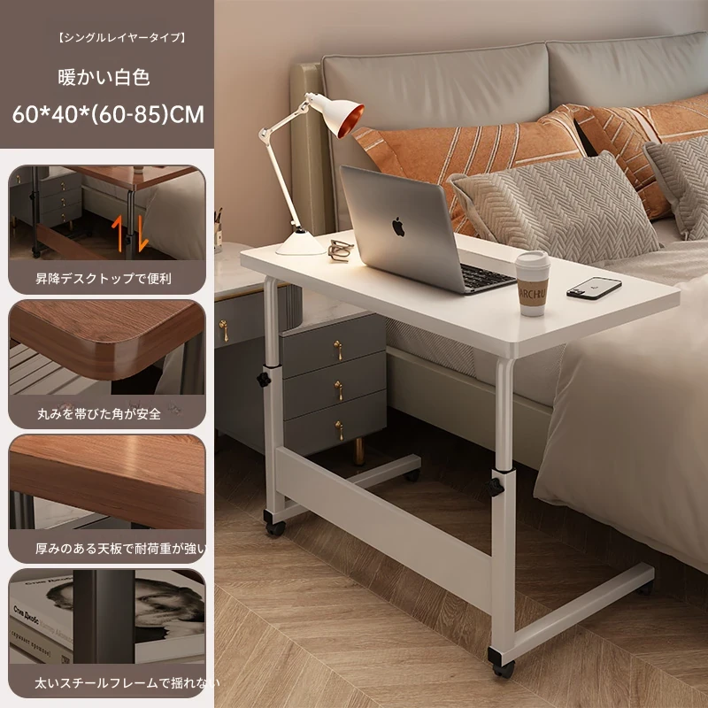 移動式ベッドサイドテーブル 昇降可能なコンピューターデスク 簡単設置の学生用書 desk 寝室やオフィスに最適な家庭用学習テーブル 小型で便利なデザイン