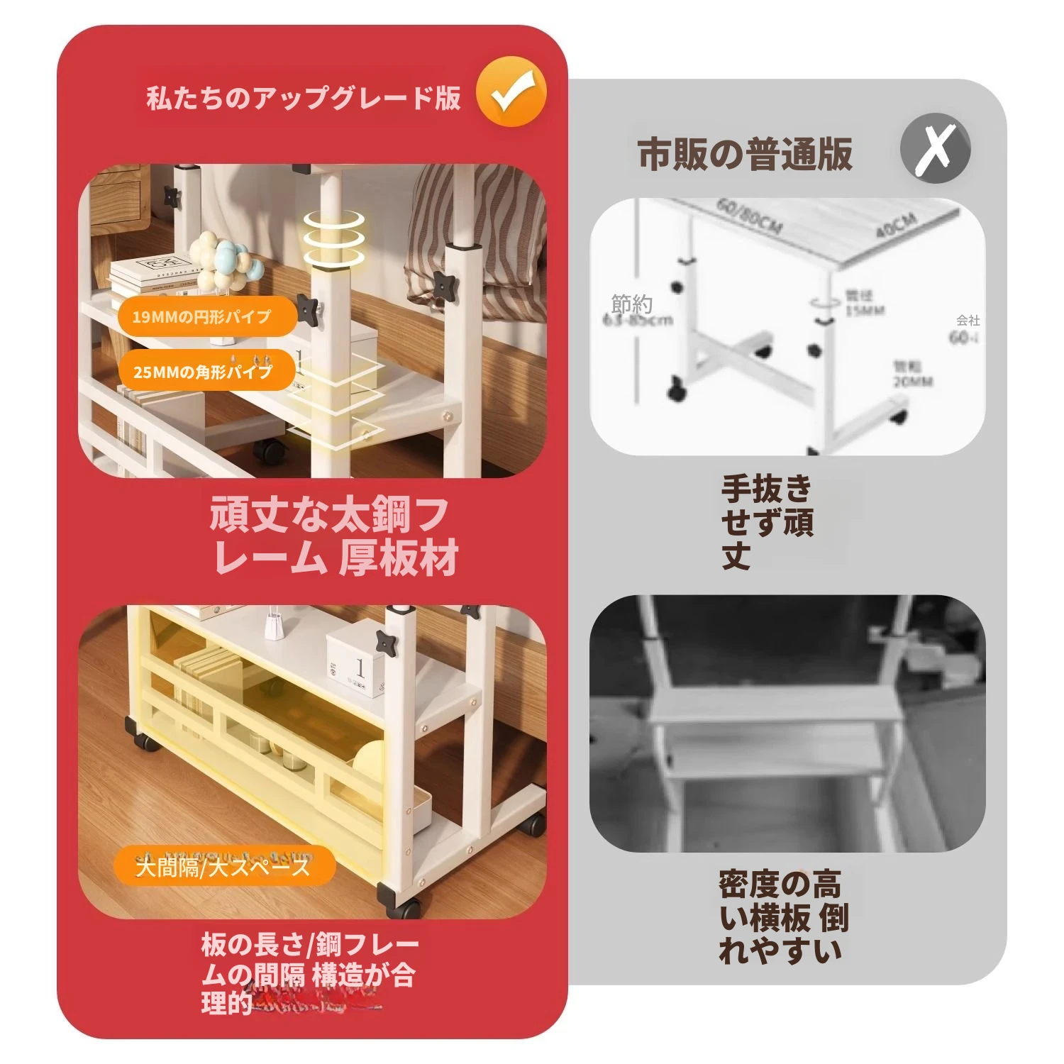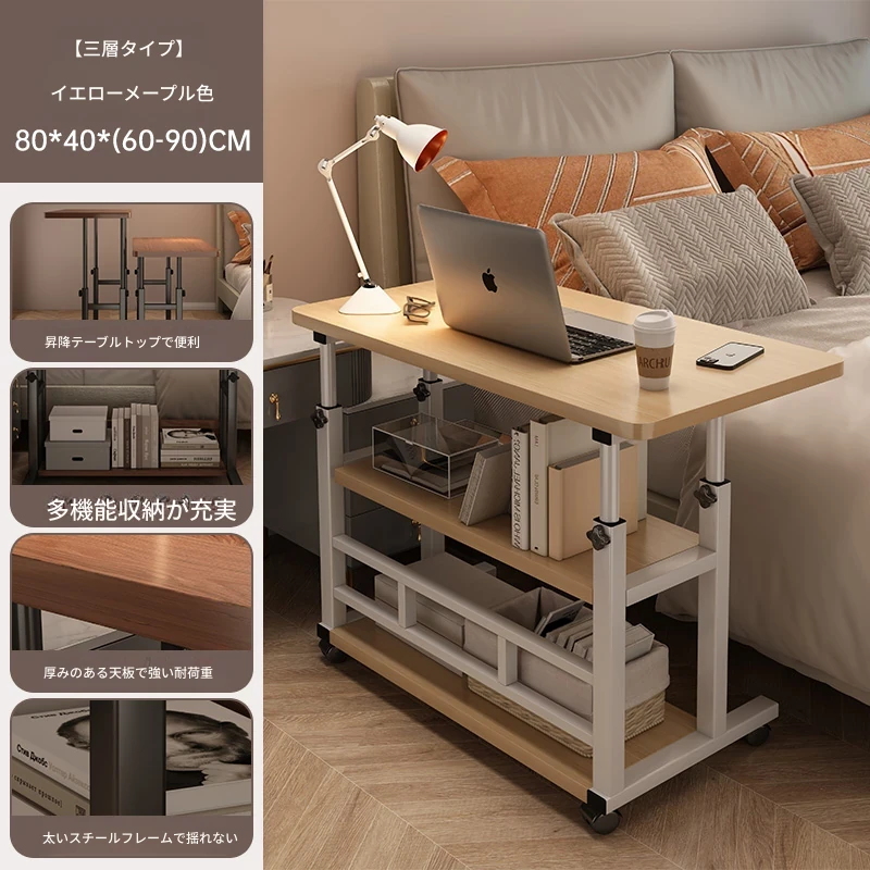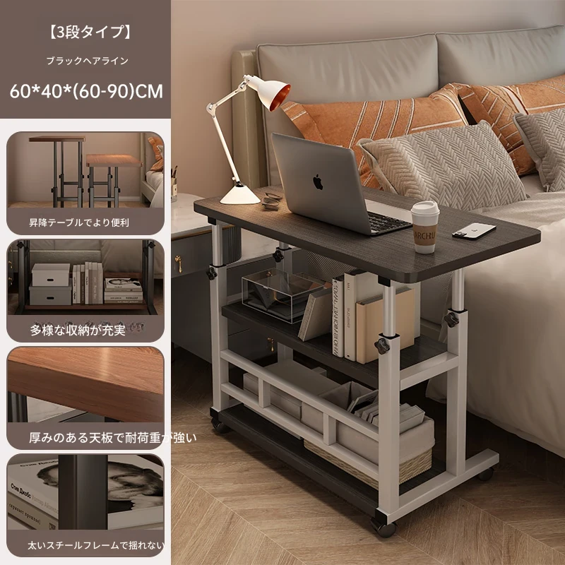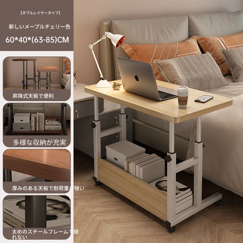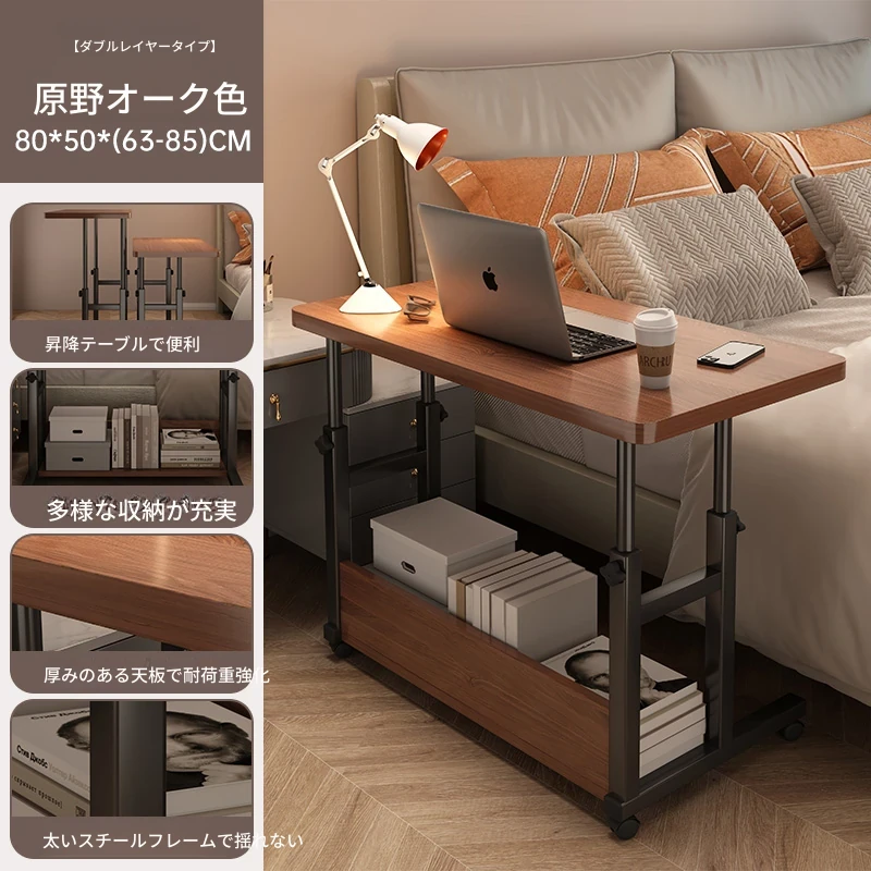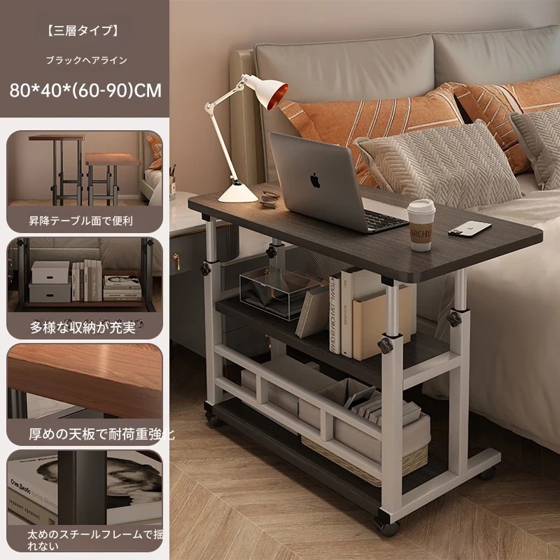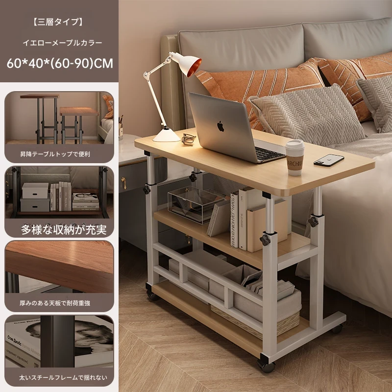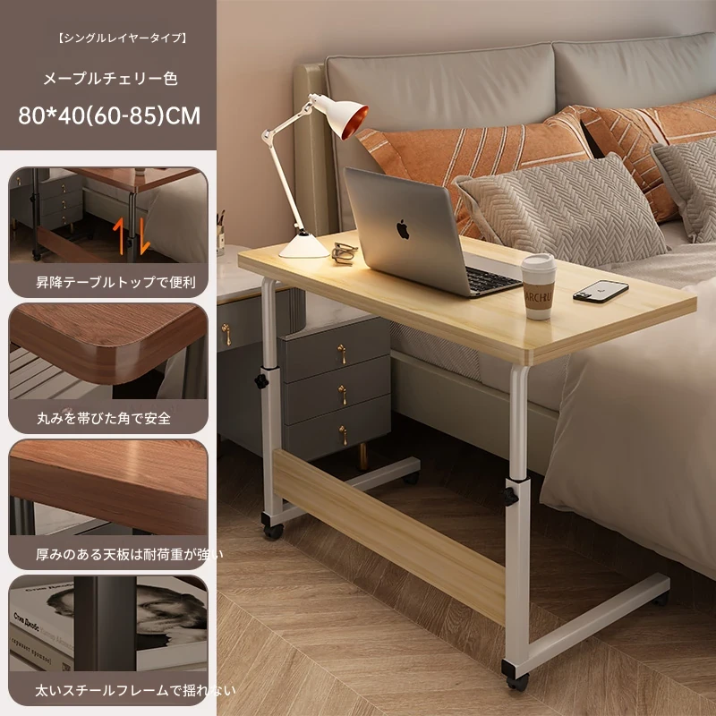 移動式ベッドサイドテーブル 昇降可能なコンピューターデスク 簡単設置の学生用書 desk 寝室やオフィスに最適な家庭用学習テーブル 小型で便利なデザイン