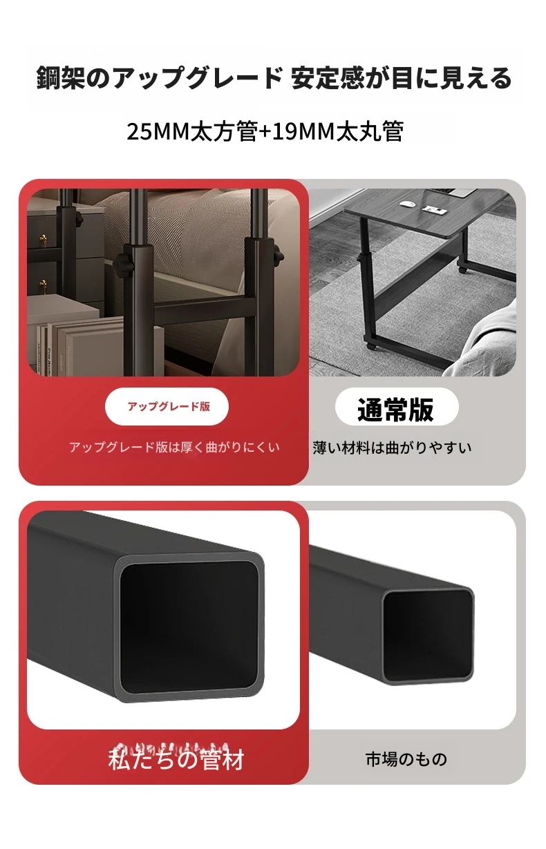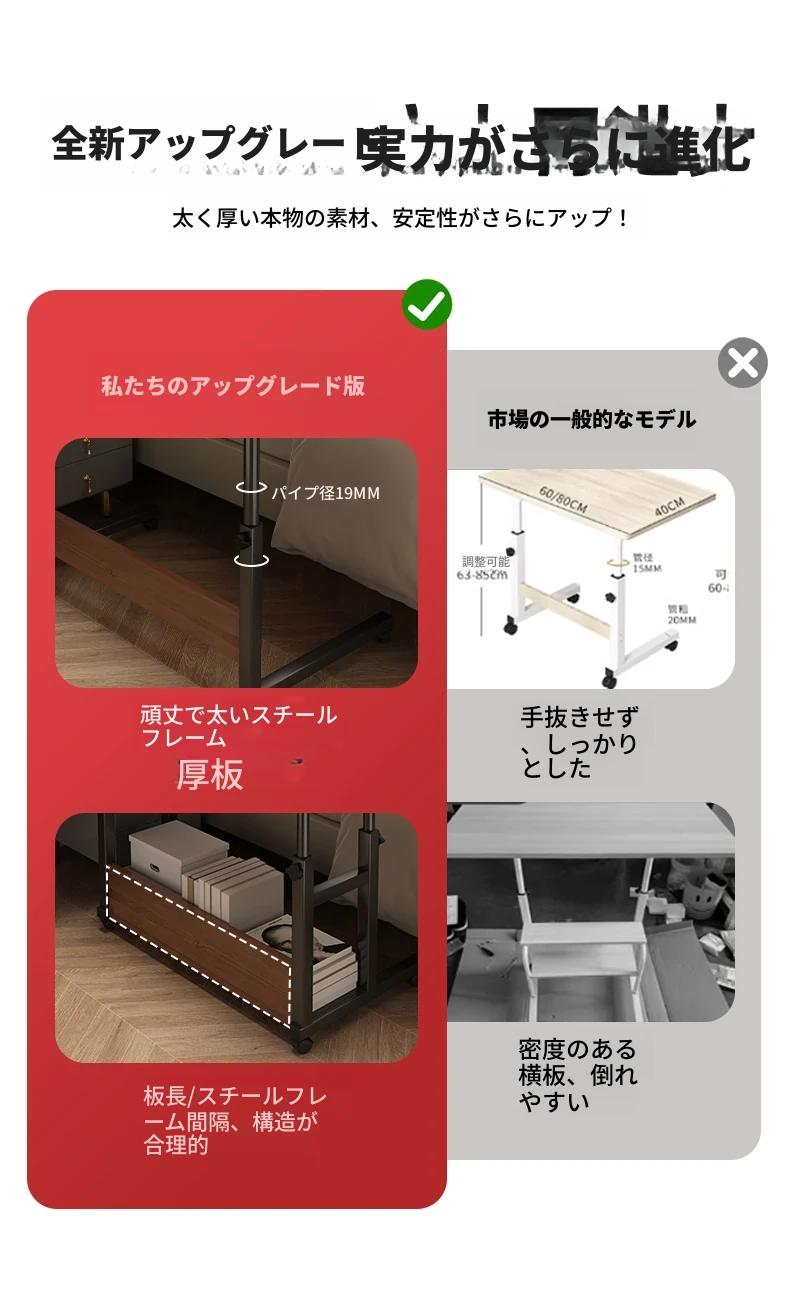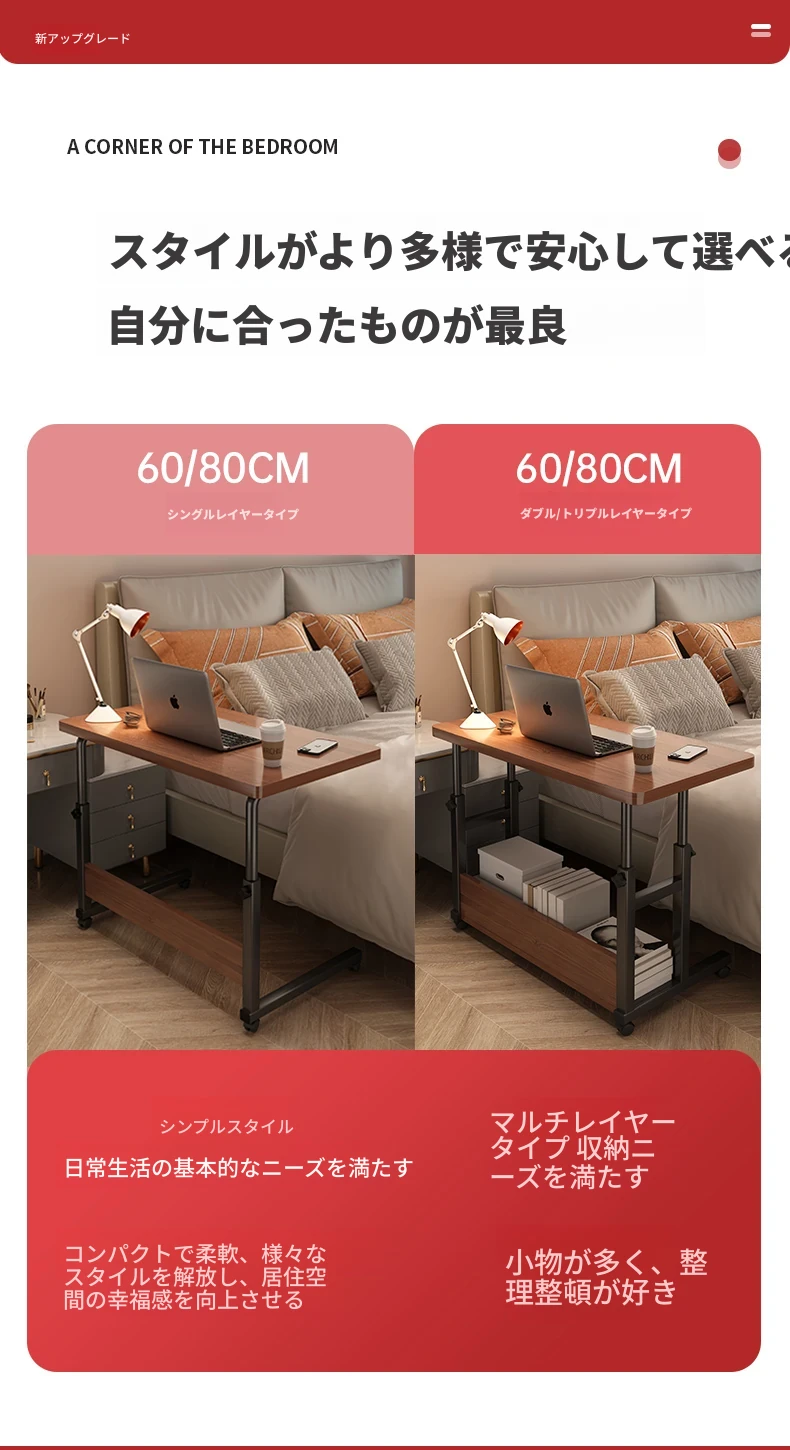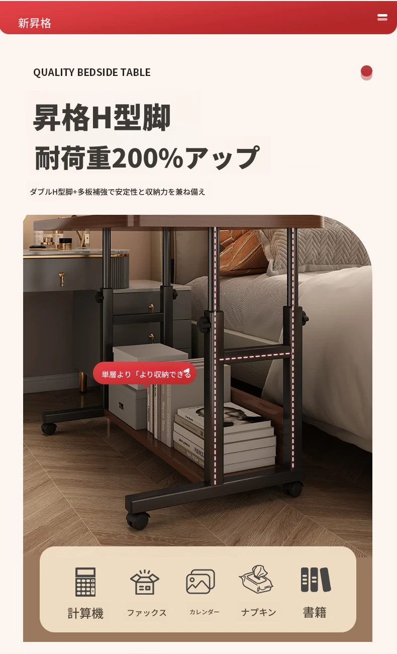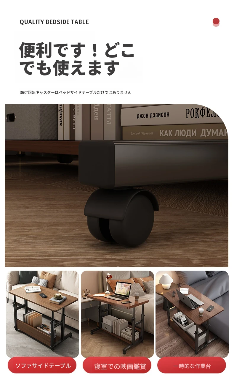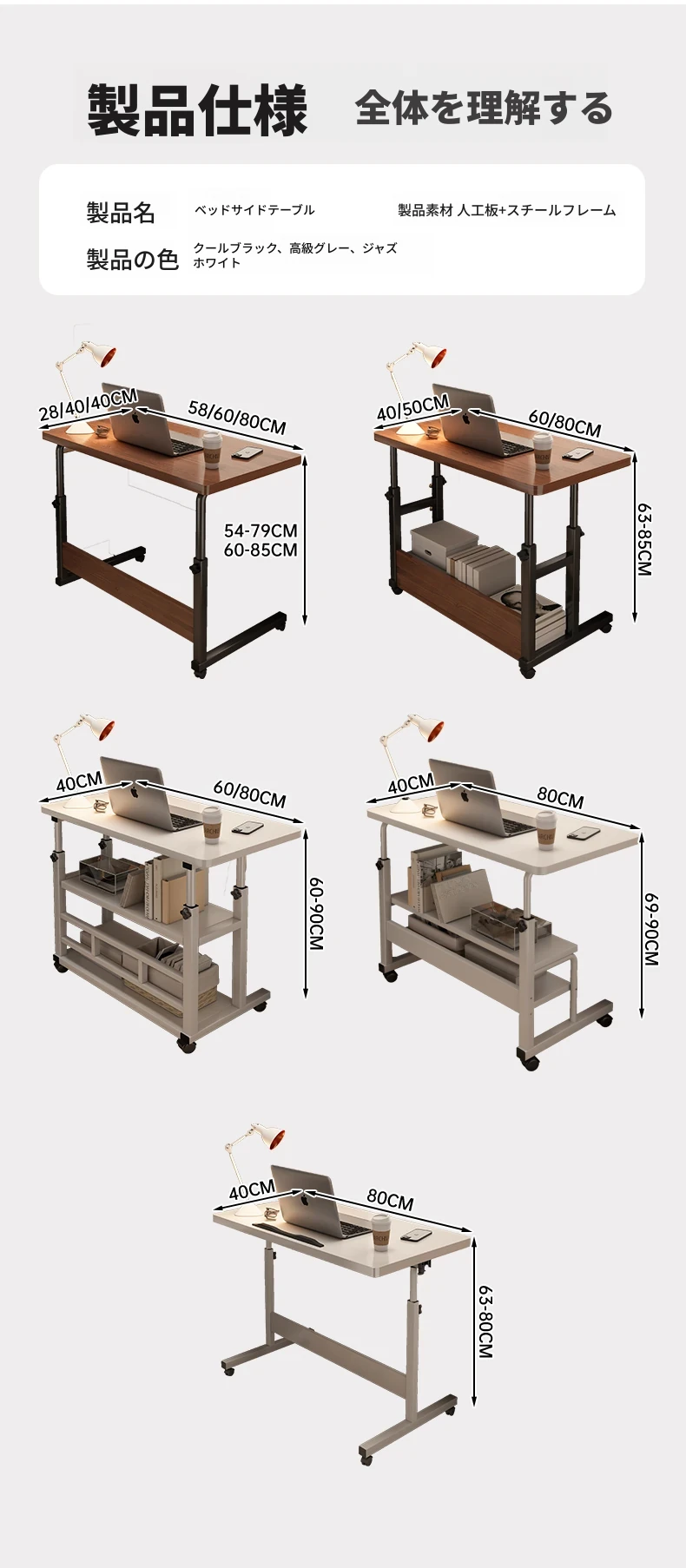 移動式ベッドサイドテーブル 昇降可能なコンピューターデスク 簡単設置の学生用書 desk 寝室やオフィスに最適な家庭用学習テーブル 小型で便利なデザイン