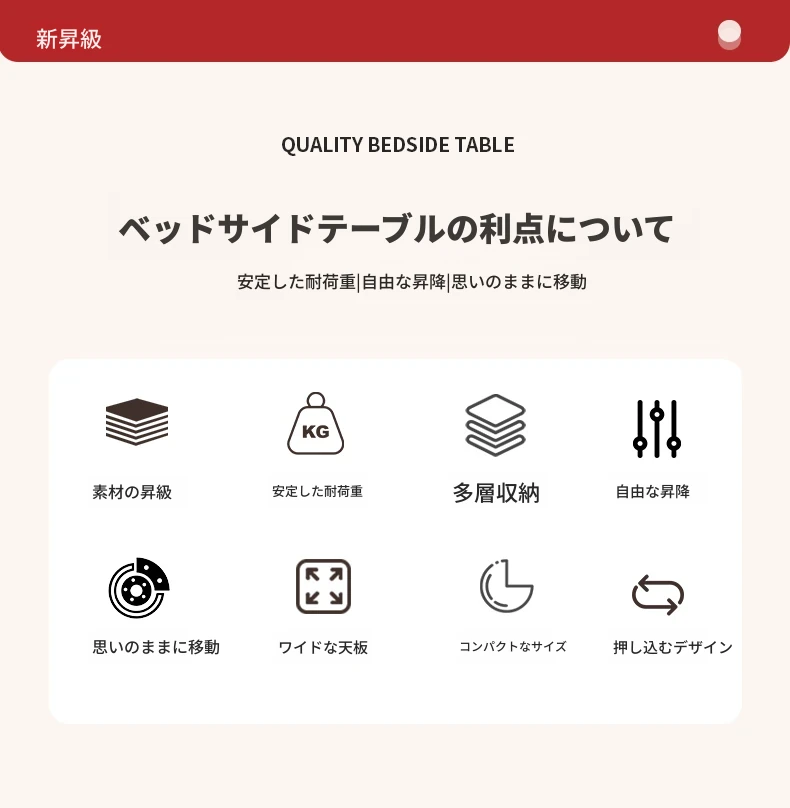 【単段式丨昇降タイプ】メープルチェリー色80*40cmキャスター付き