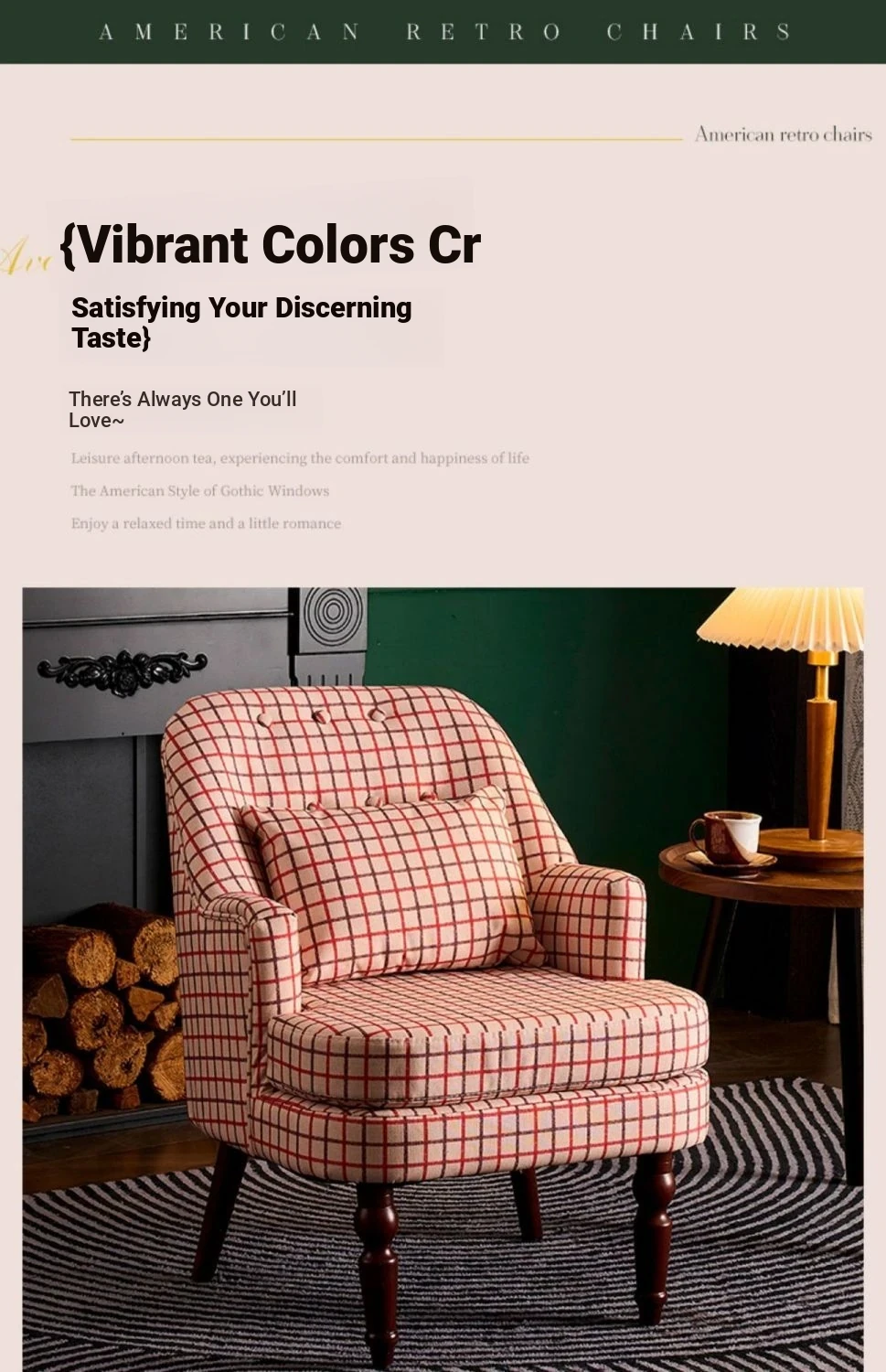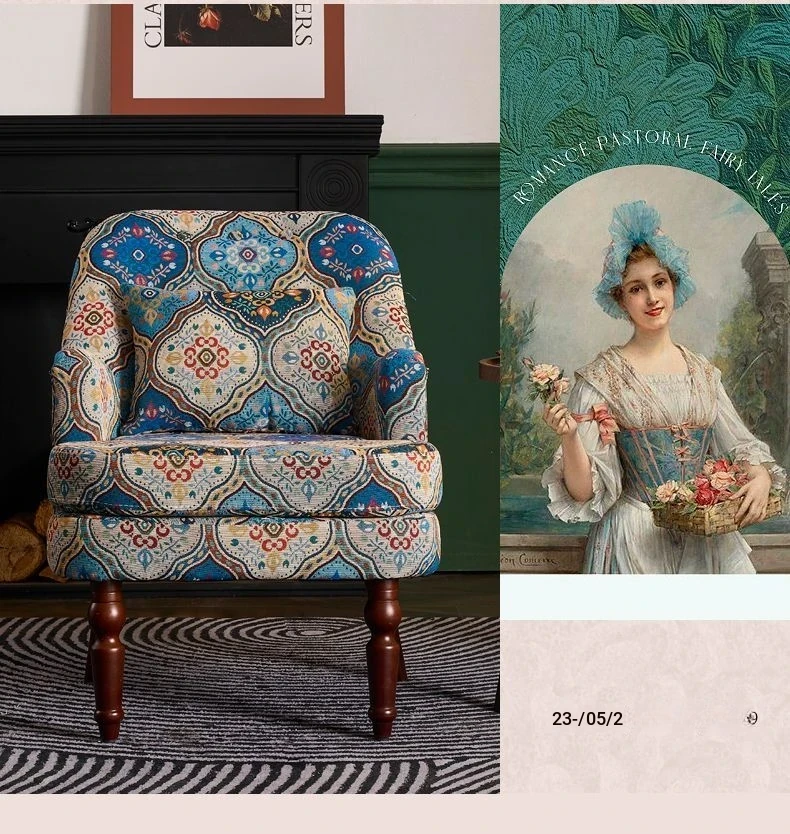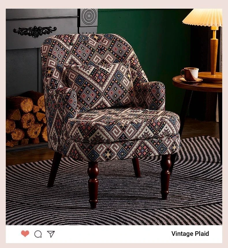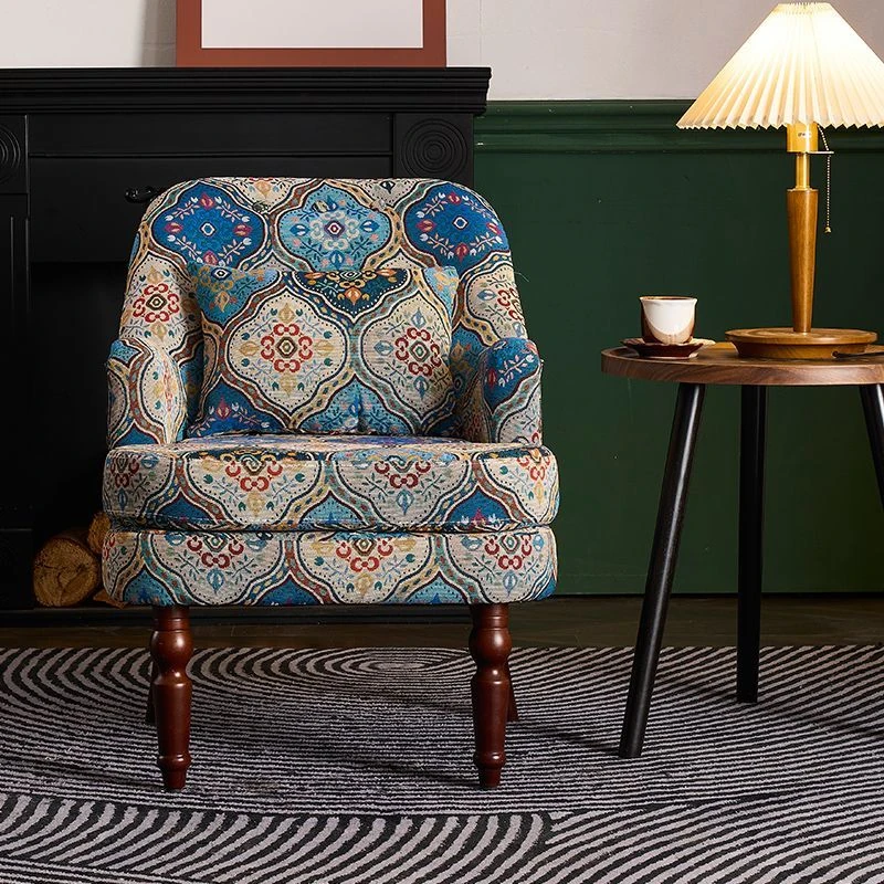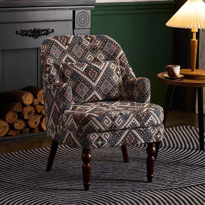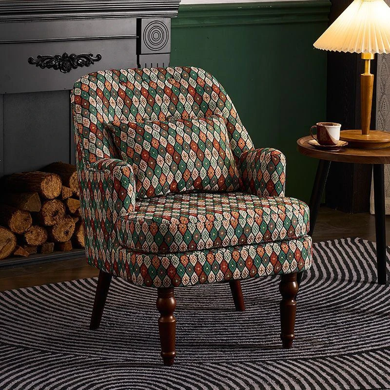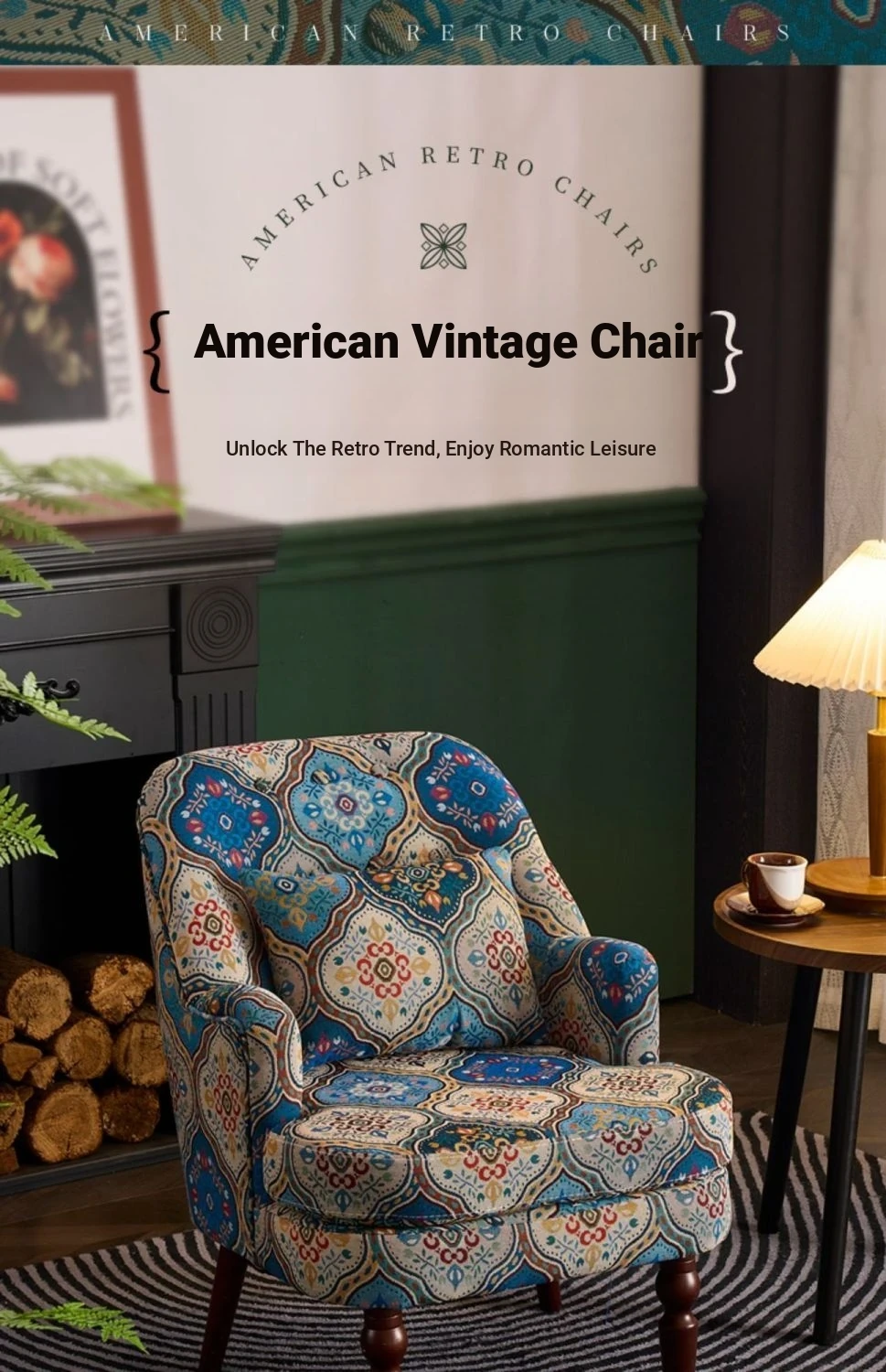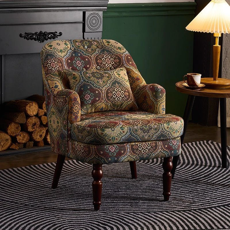 American Vintage Armchair for Small Spaces - Single Seat Regal Pattern Leisure Chair, Trendy Fabric Tiger Sofa, Perfect for Cozy Living Rooms