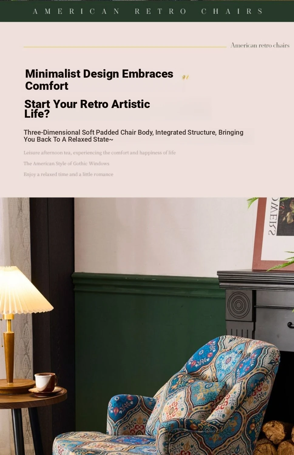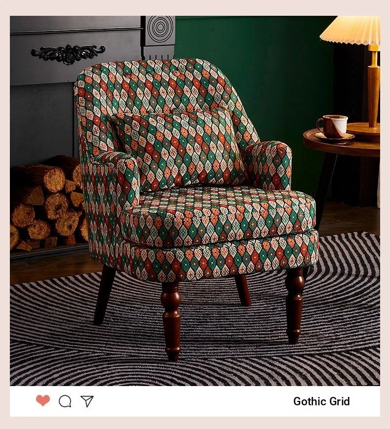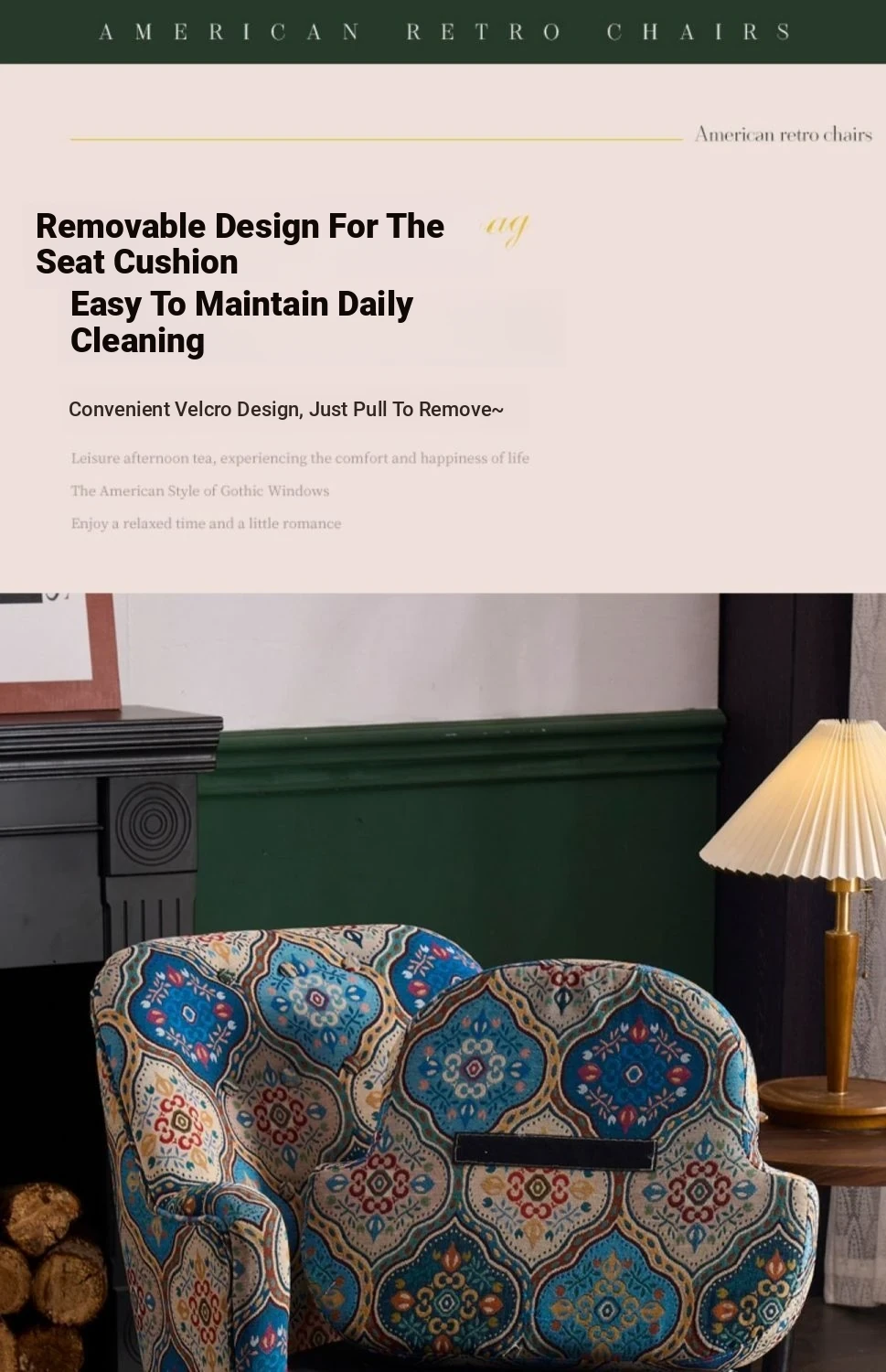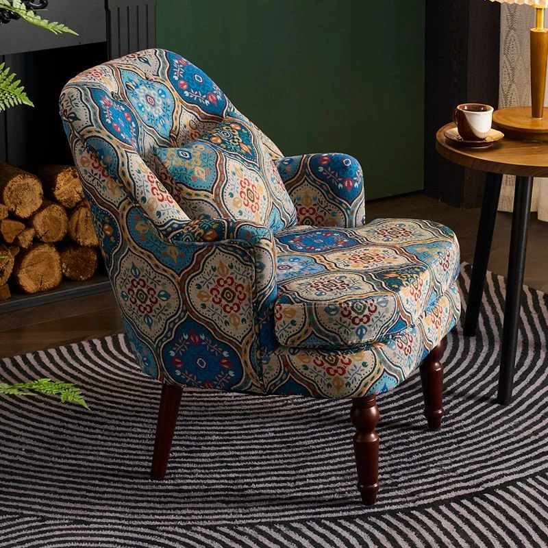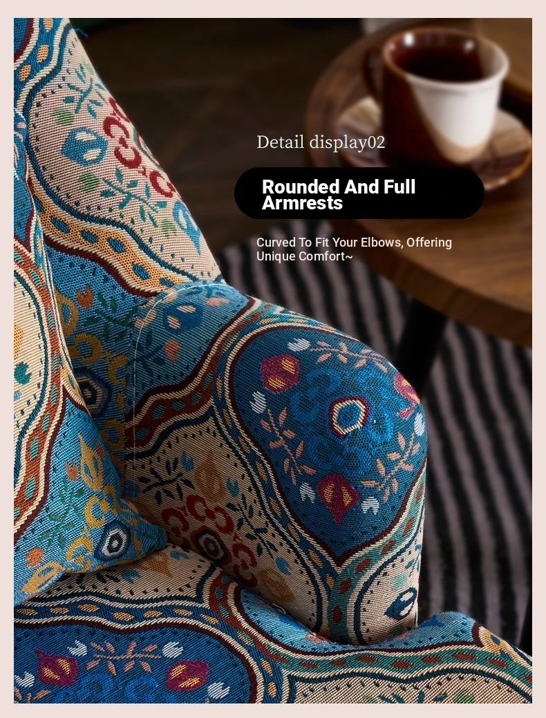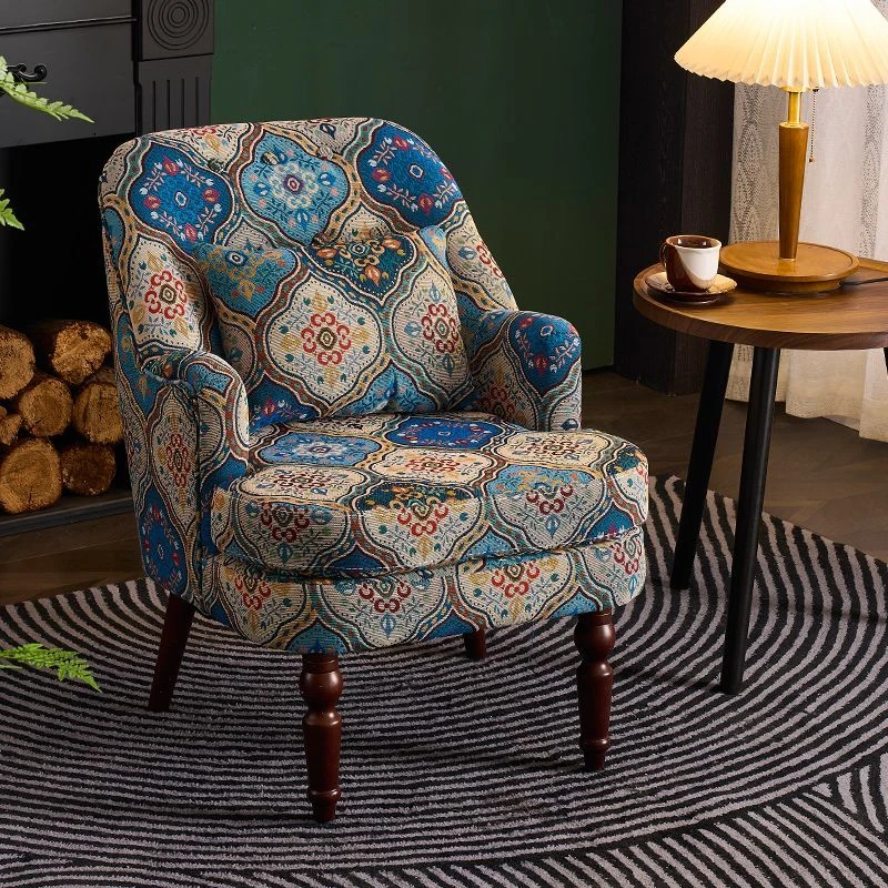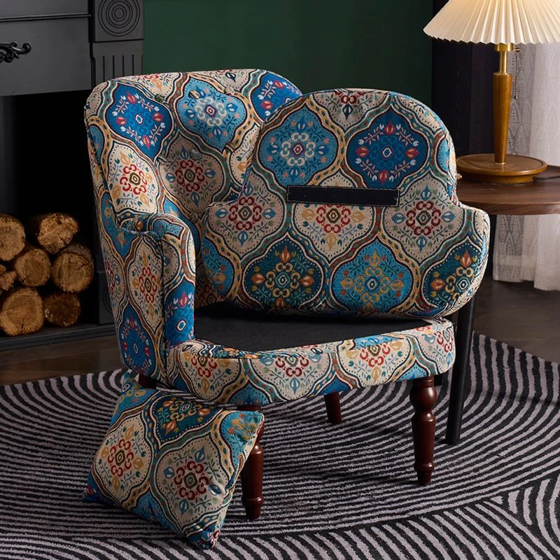 American Vintage Armchair for Small Spaces - Single Seat Regal Pattern Leisure Chair, Trendy Fabric Tiger Sofa, Perfect for Cozy Living Rooms