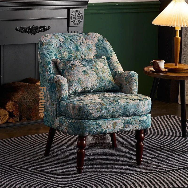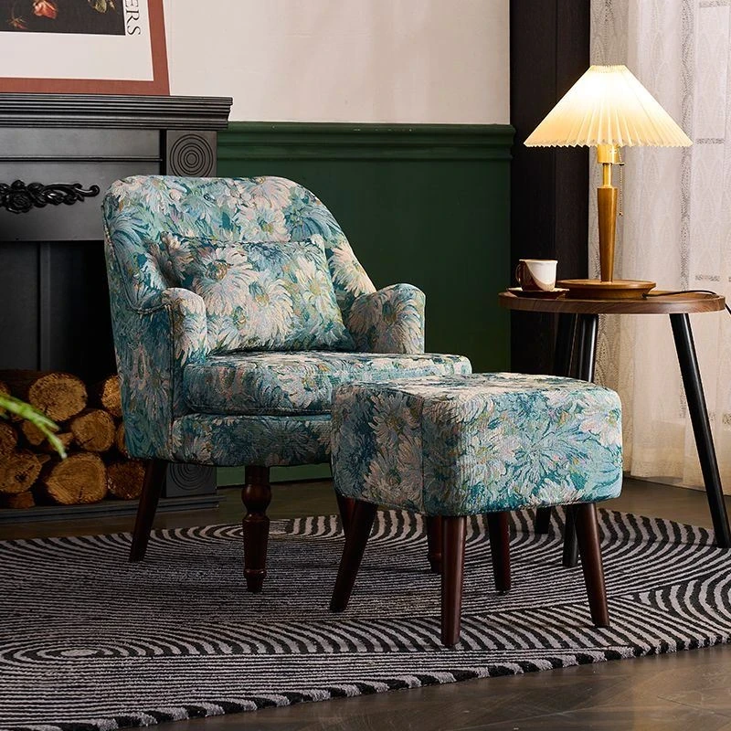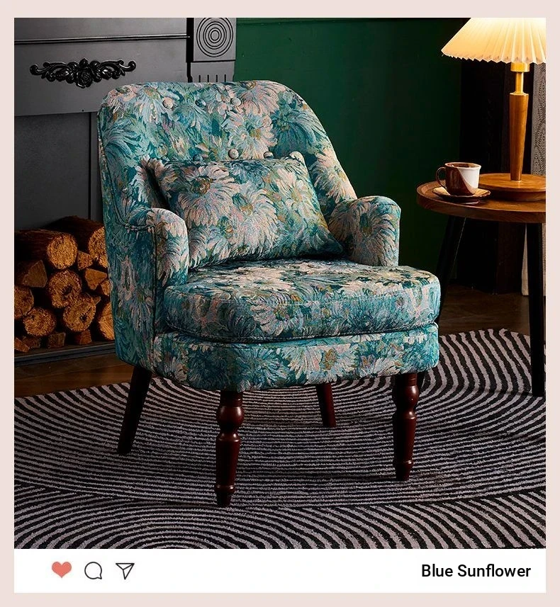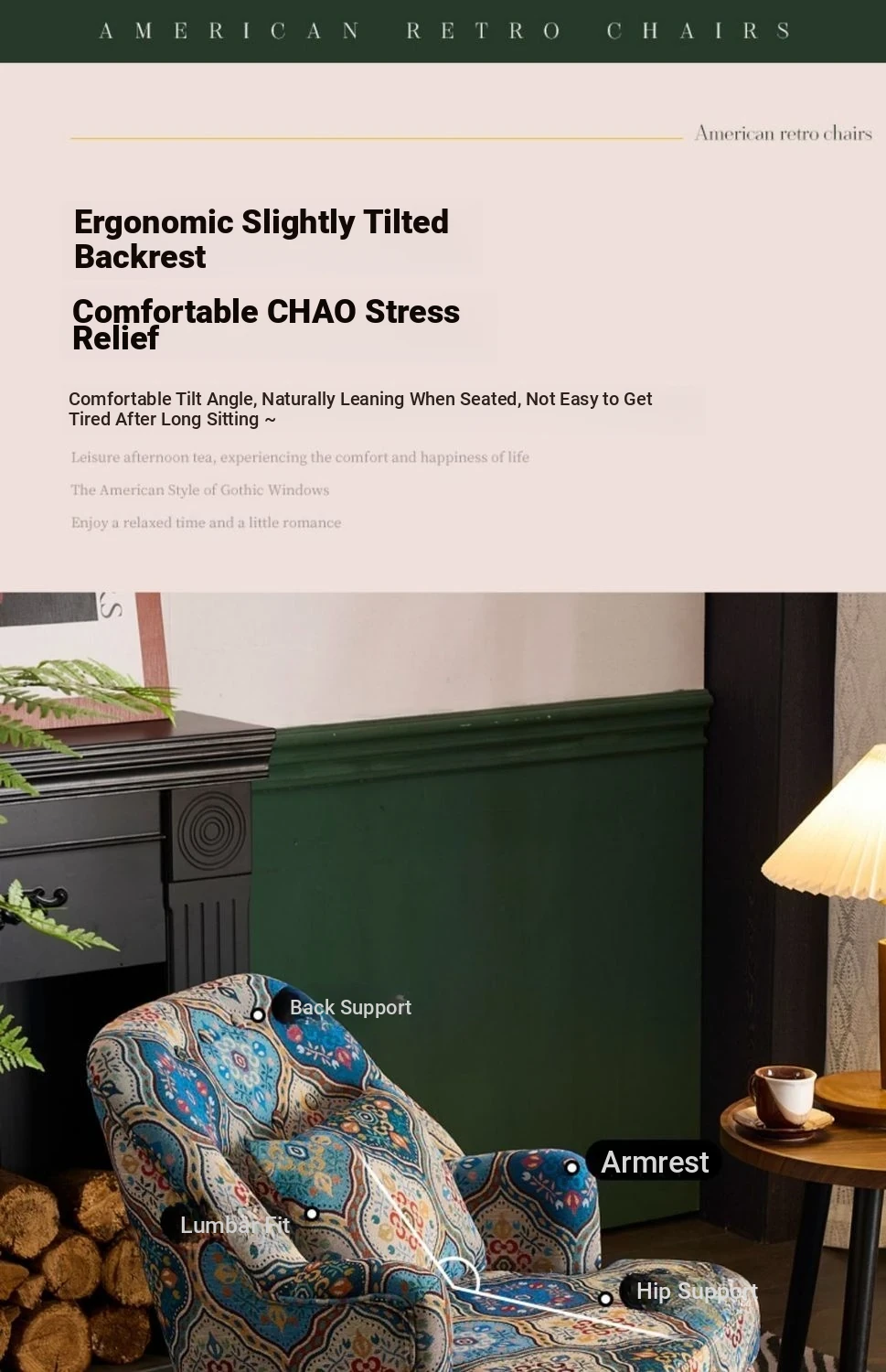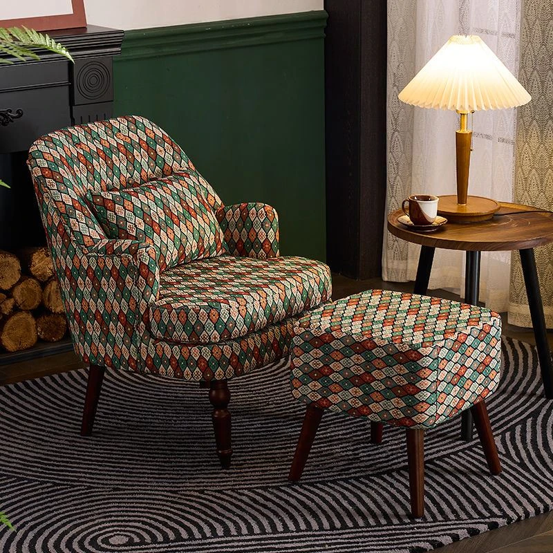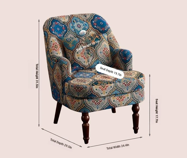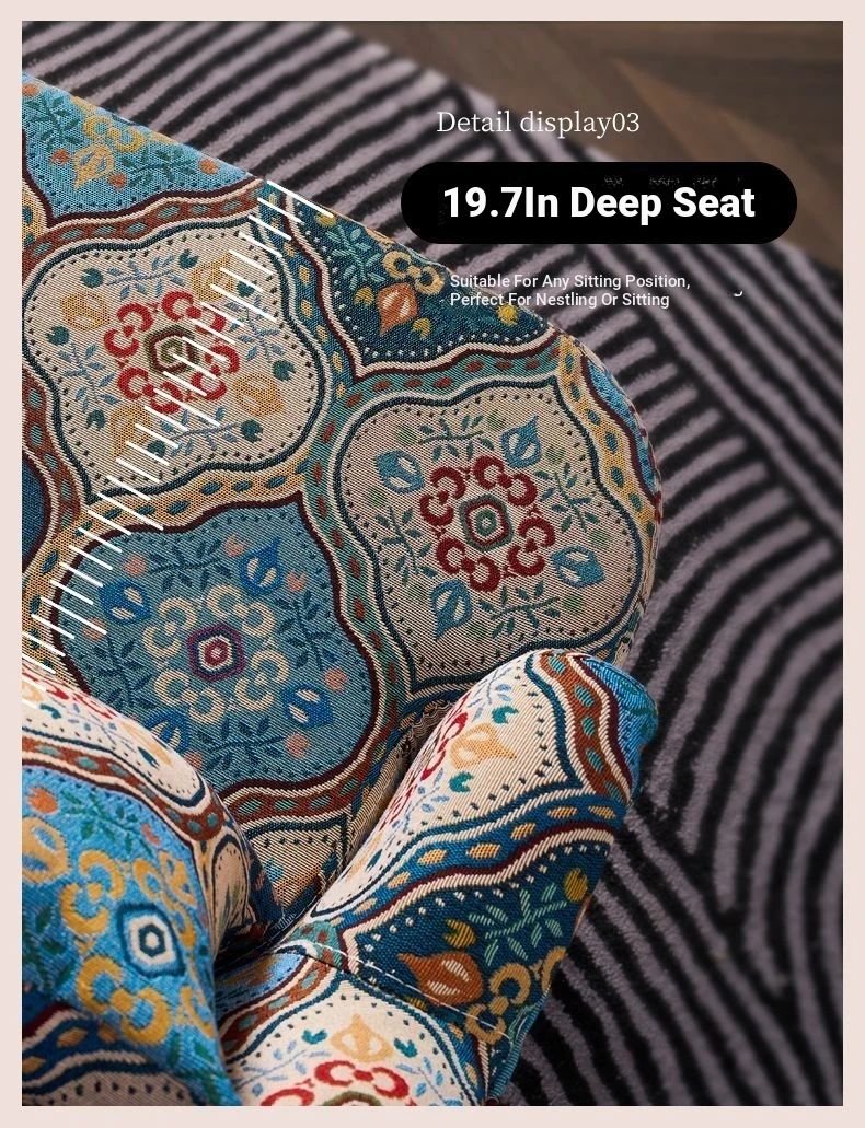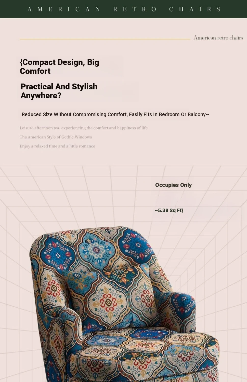 American Vintage Armchair for Small Spaces - Single Seat Regal Pattern Leisure Chair, Trendy Fabric Tiger Sofa, Perfect for Cozy Living Rooms