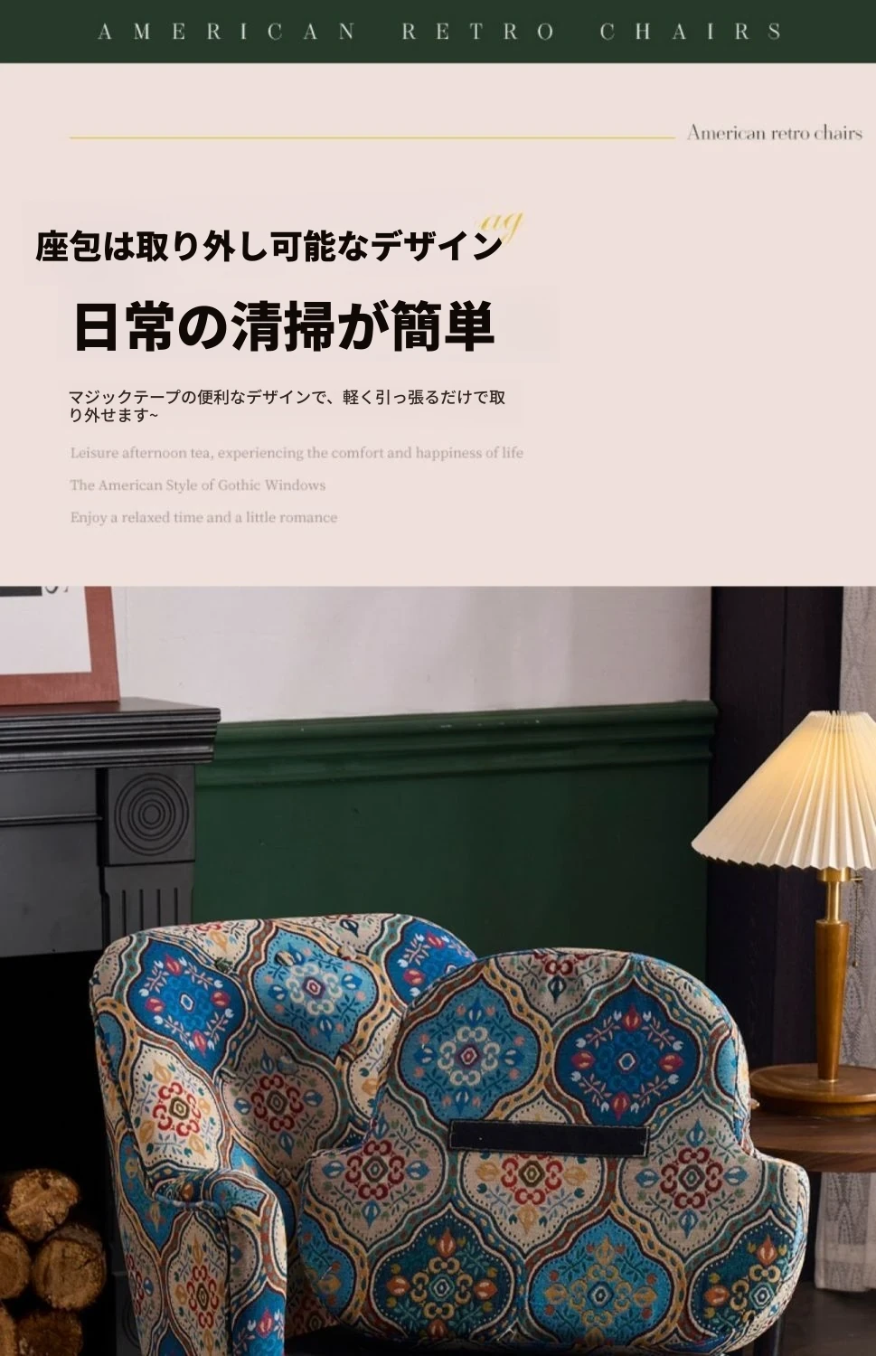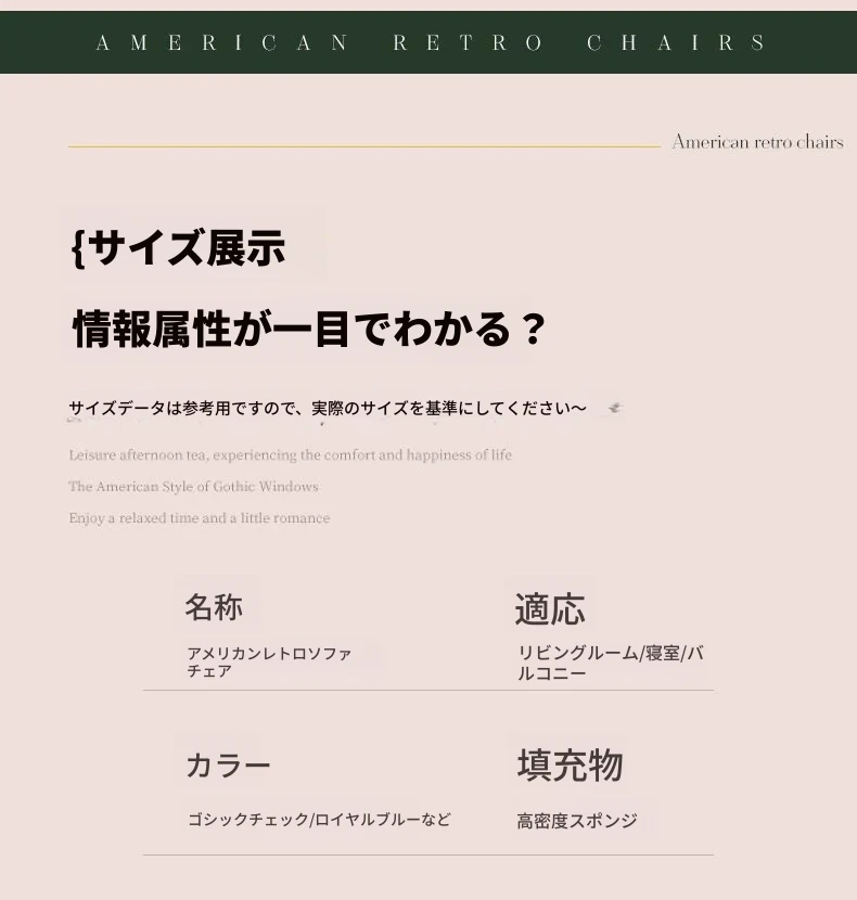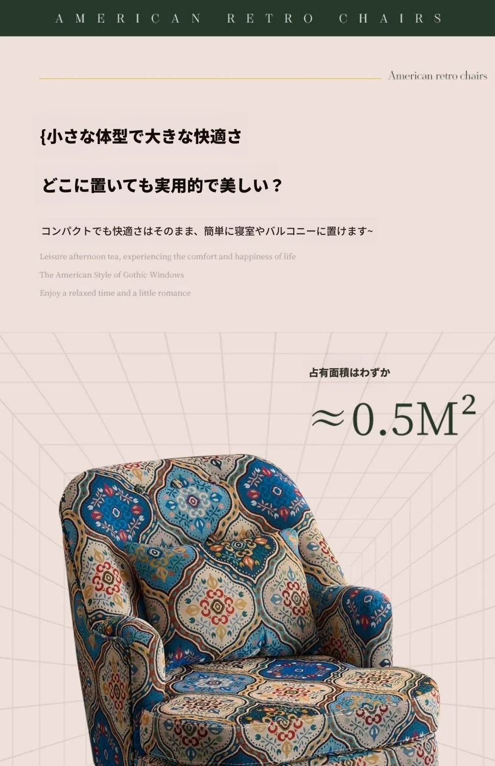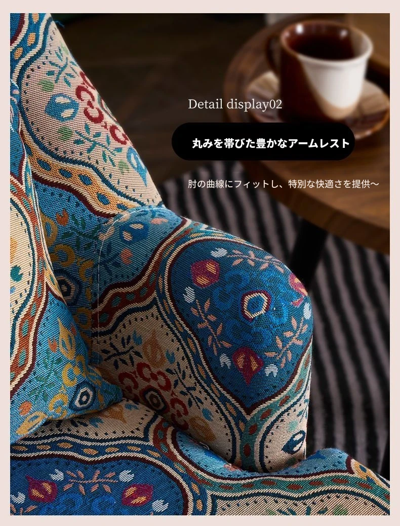 アメリカンレトロソファチェア 小型住宅向け 一人用 宮廷模様の田舎風リラックスチェア 人気のファブリック製トラチェア ソファとしても使用可!おしゃれで快適な空間を演出します。
