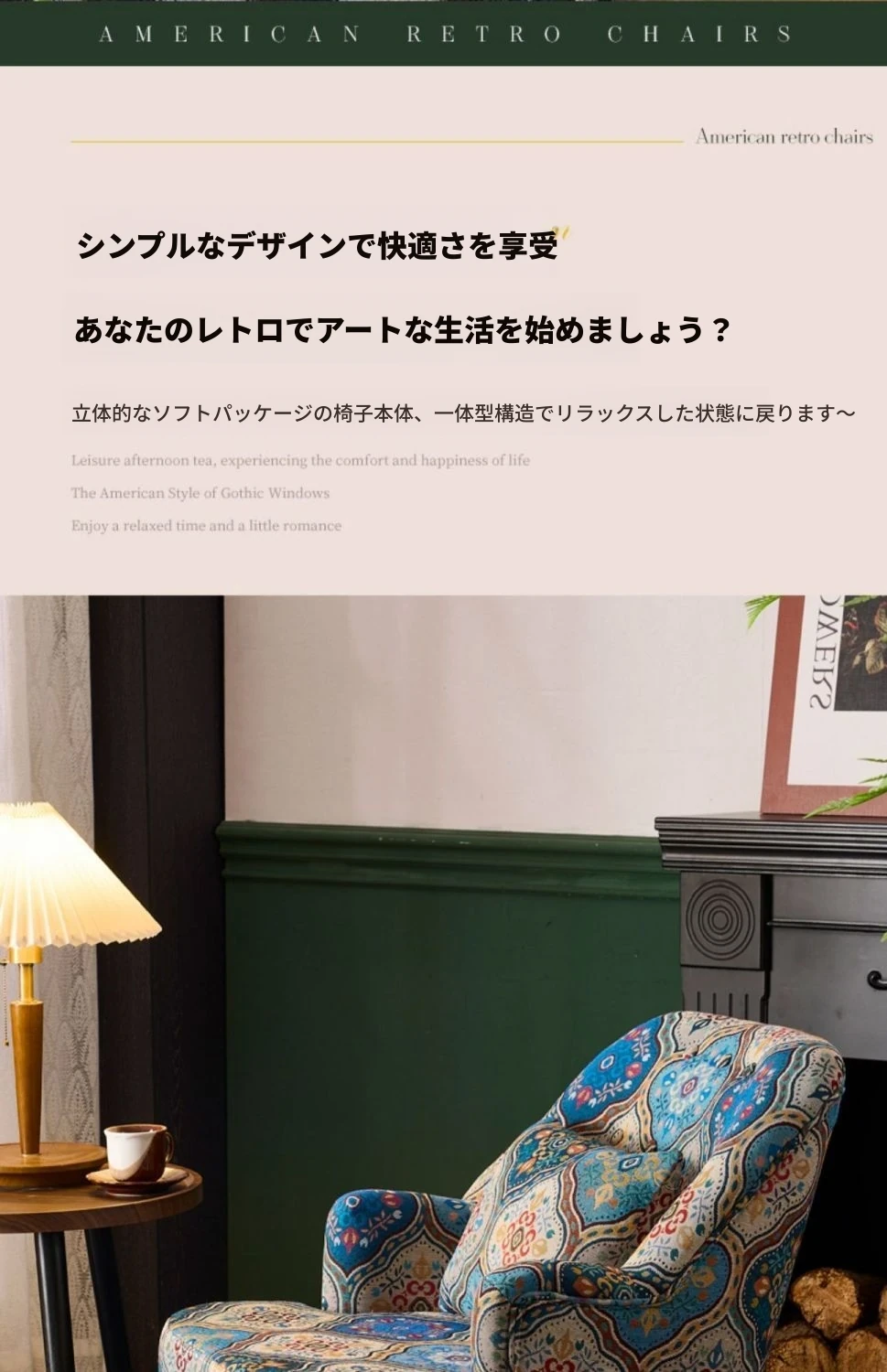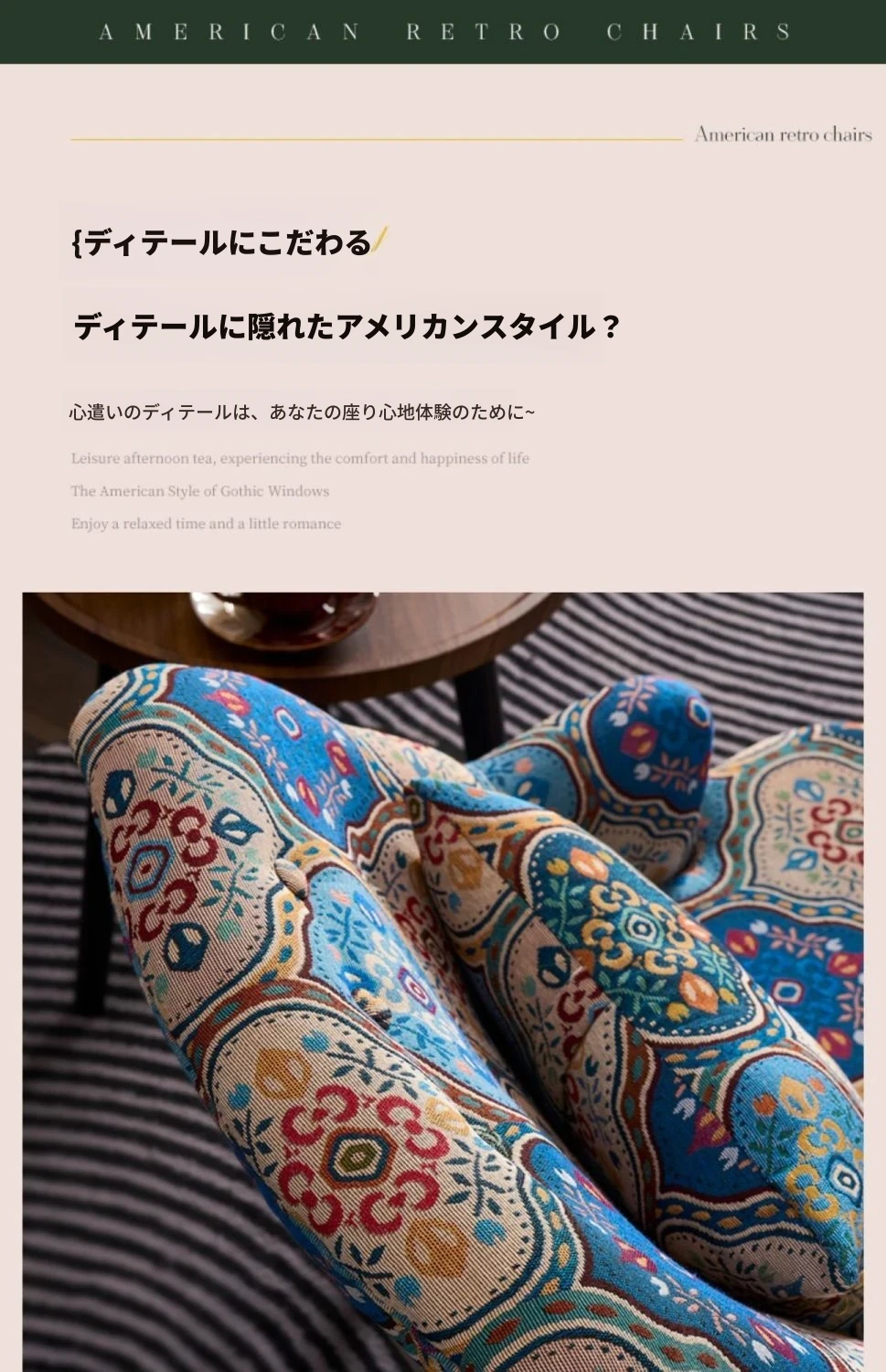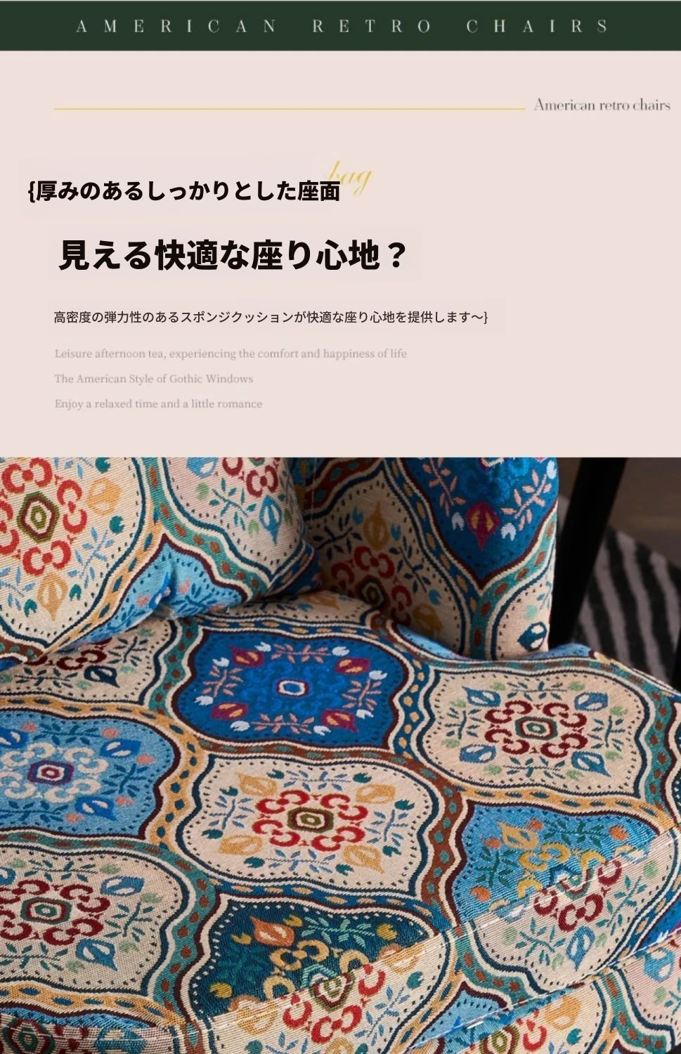 アメリカンレトロソファチェア 小型住宅向け 一人用 宮廷模様の田舎風リラックスチェア 人気のファブリック製トラチェア ソファとしても使用可!おしゃれで快適な空間を演出します。