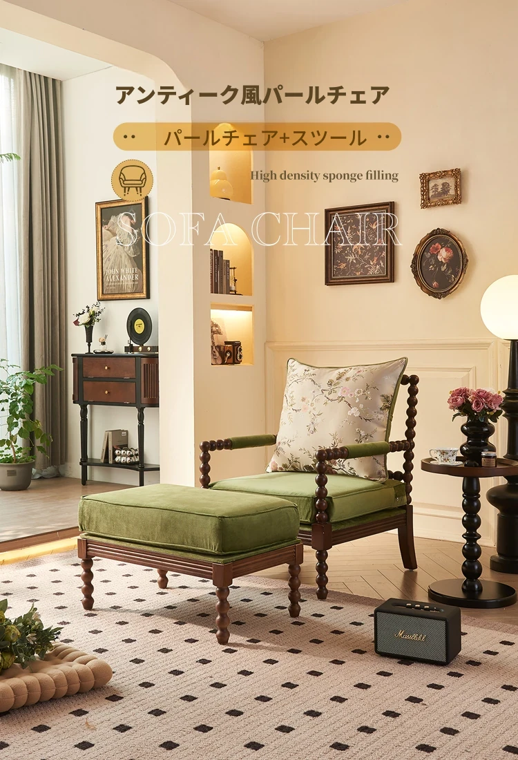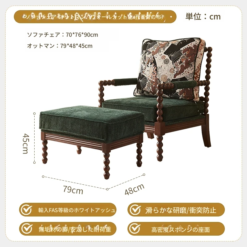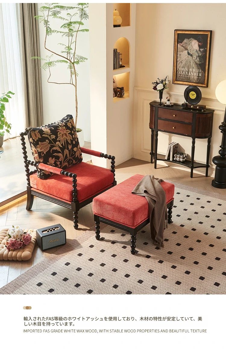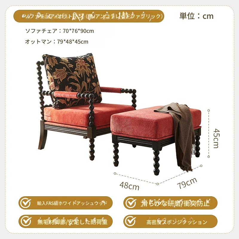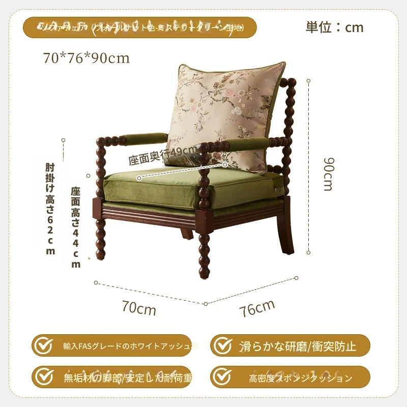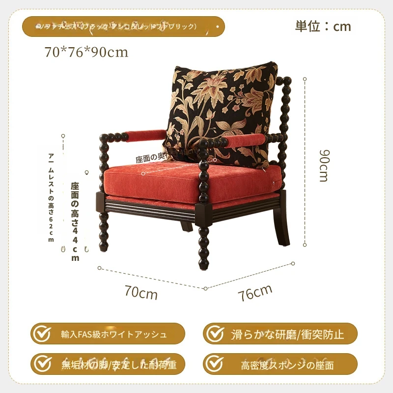 アメリカンレトロデザインの一人用ソファチェア|フランス風のラグジュアリー&高品質|おしゃれな布製のリラックスチェア|デザイナーの特別な一品で、あなたの空間を引き立てます!