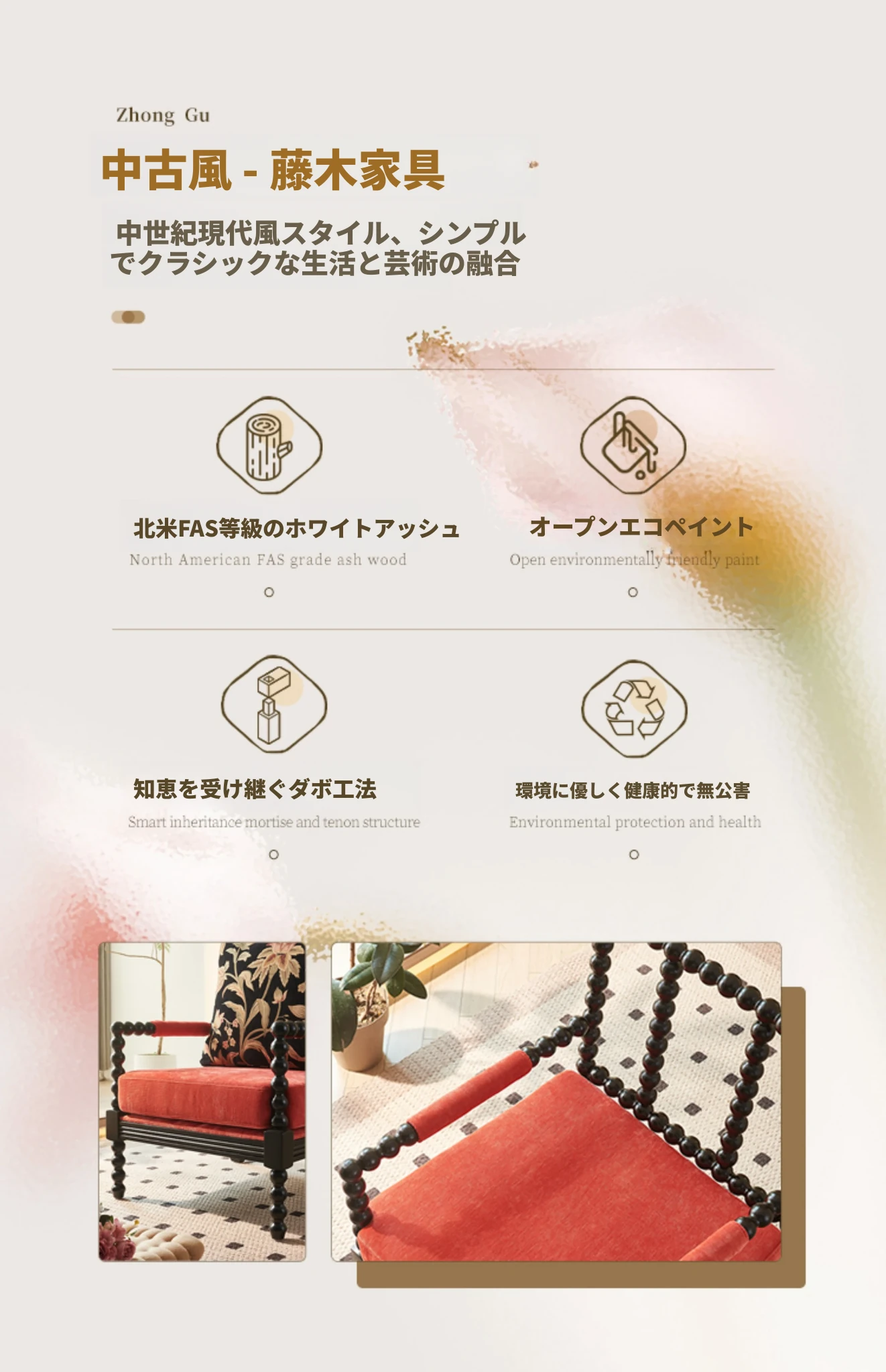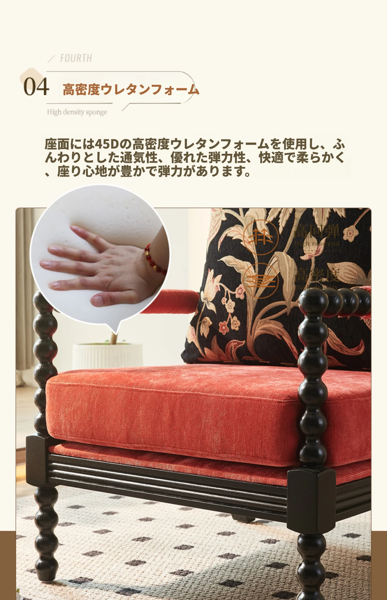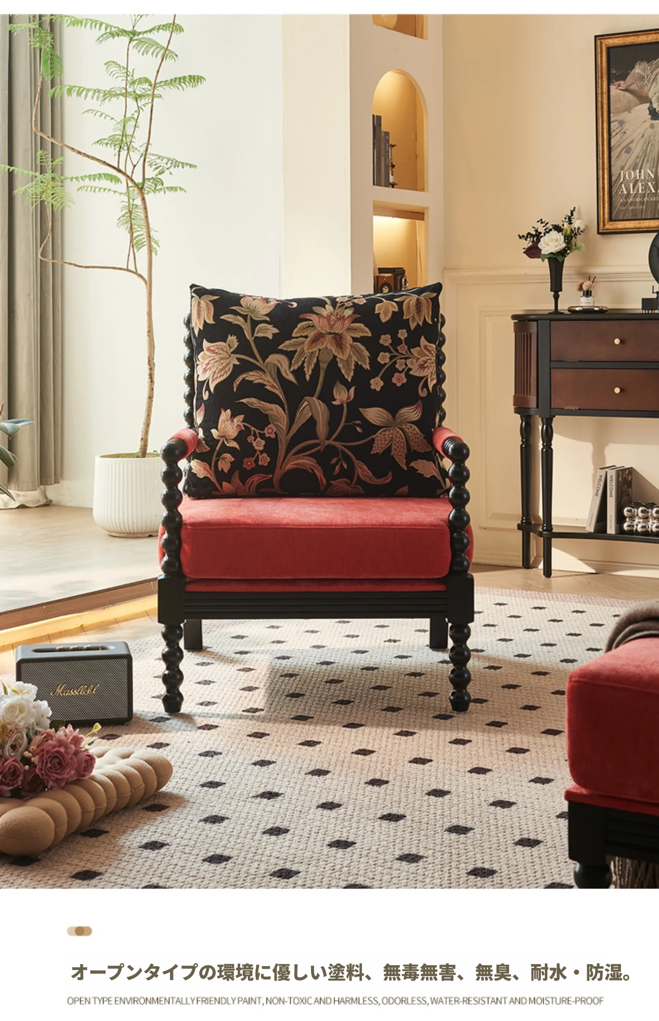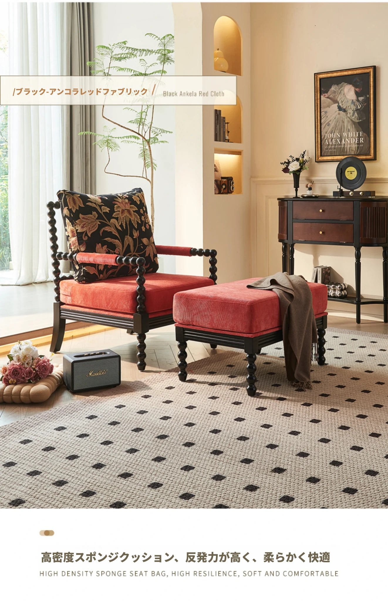 黒色+フットスツール(アンカラレッドファブリック)