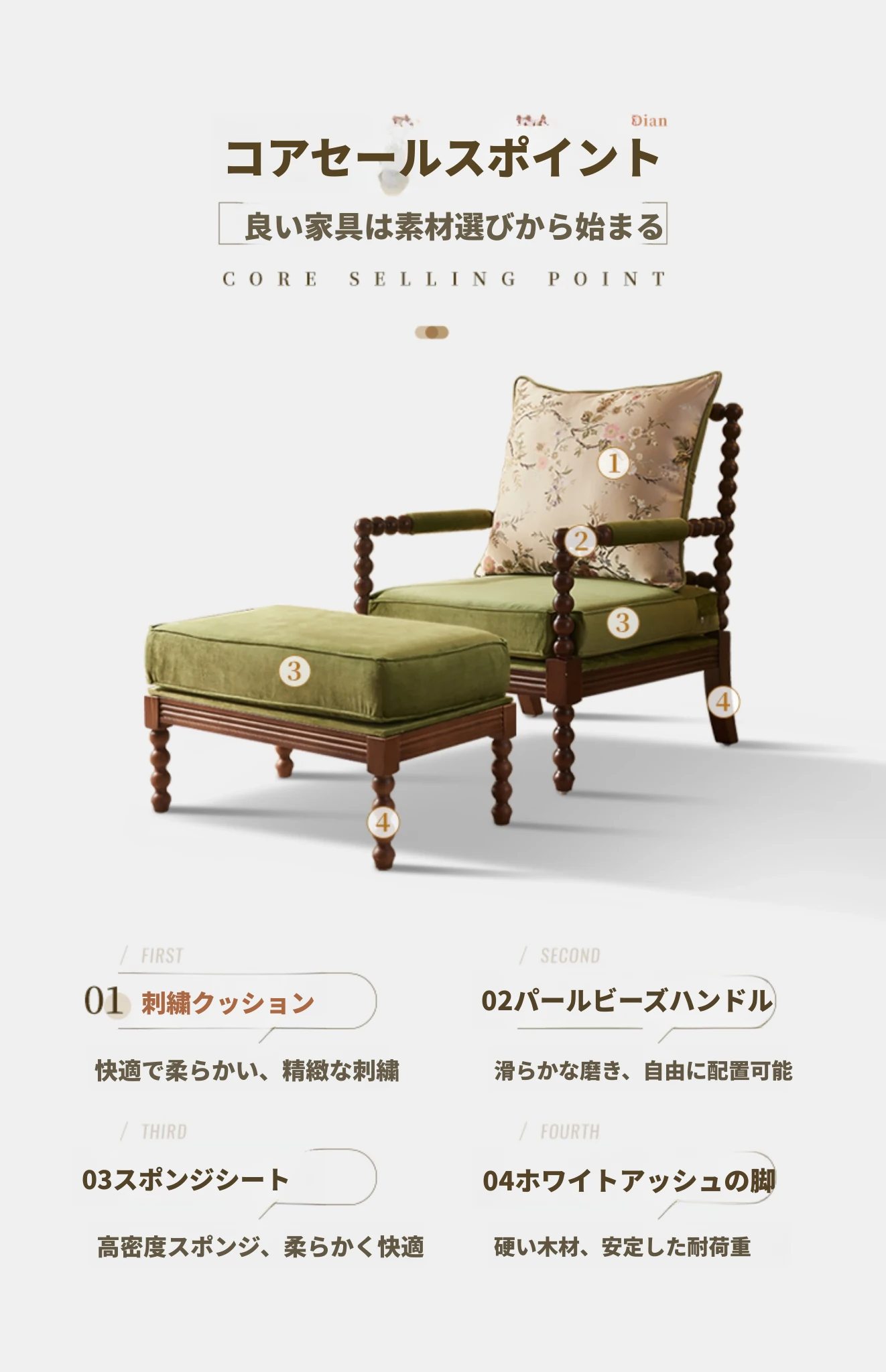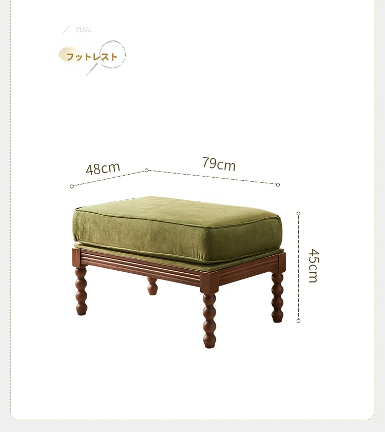 ソファチェア+フットスツール(ウォールナットカラー-ミステリーグリーンファブリック)