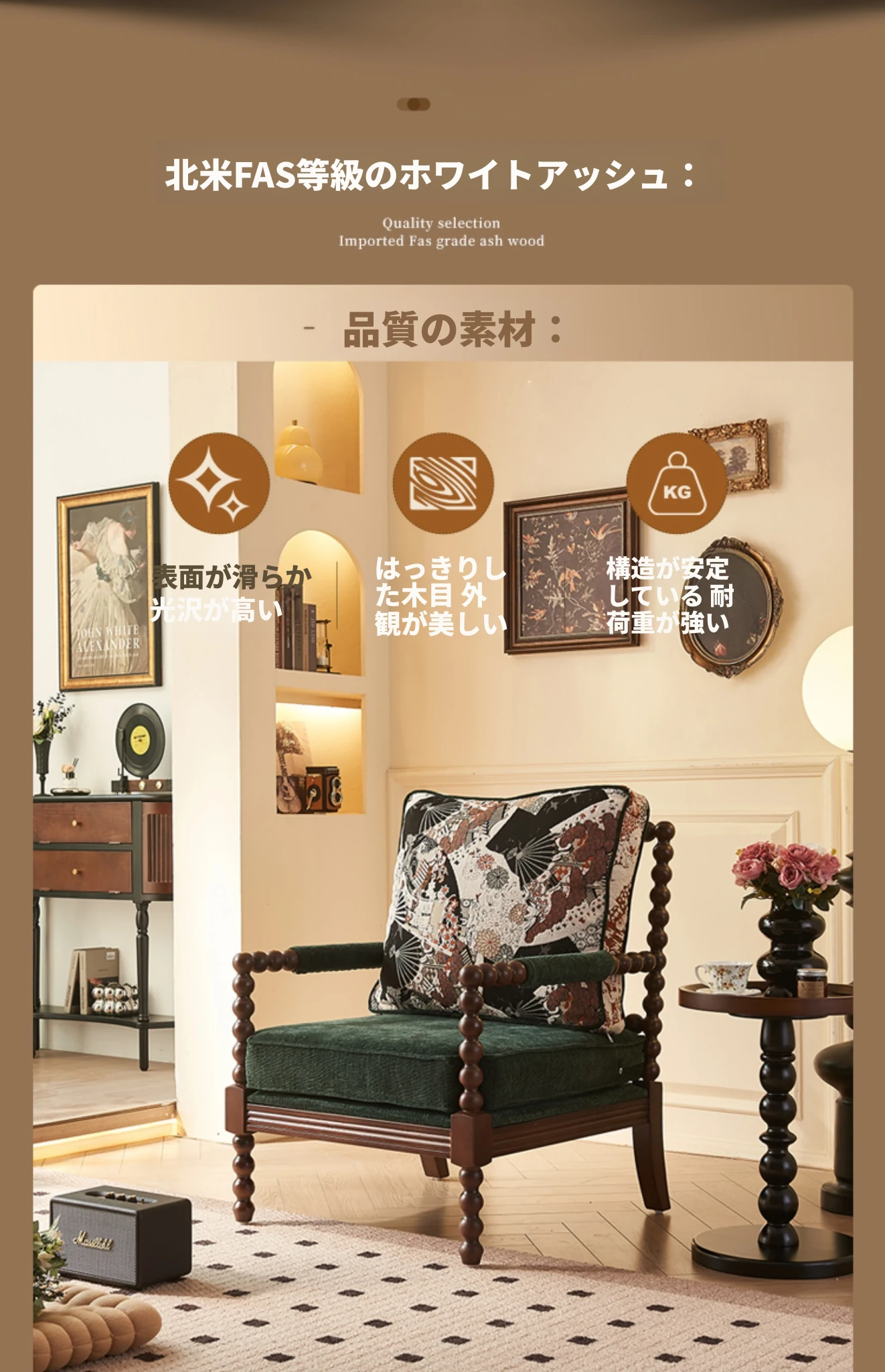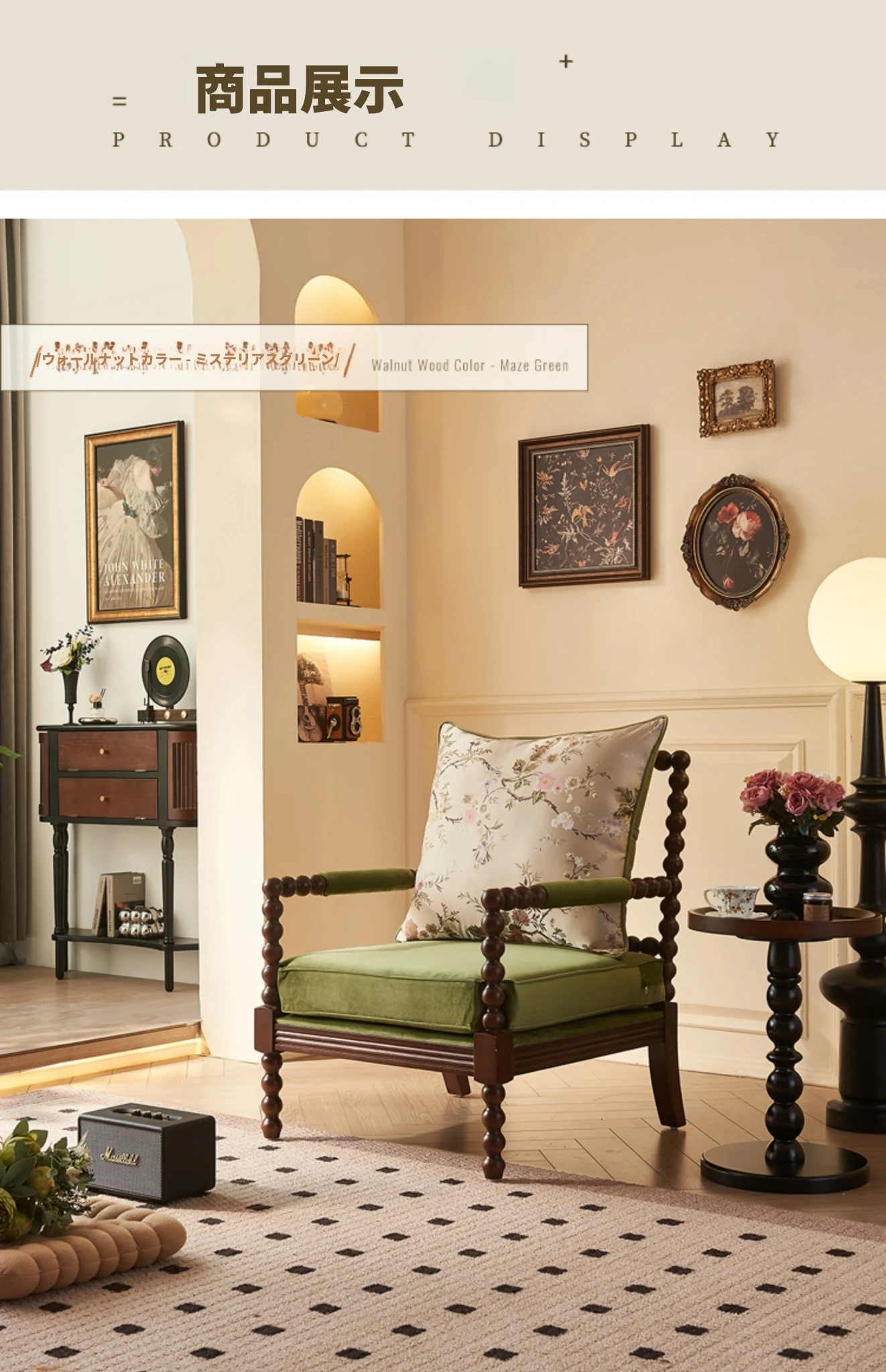 ソファチェア(ウォールナットカラー-ミステリーグリーンファブリック)