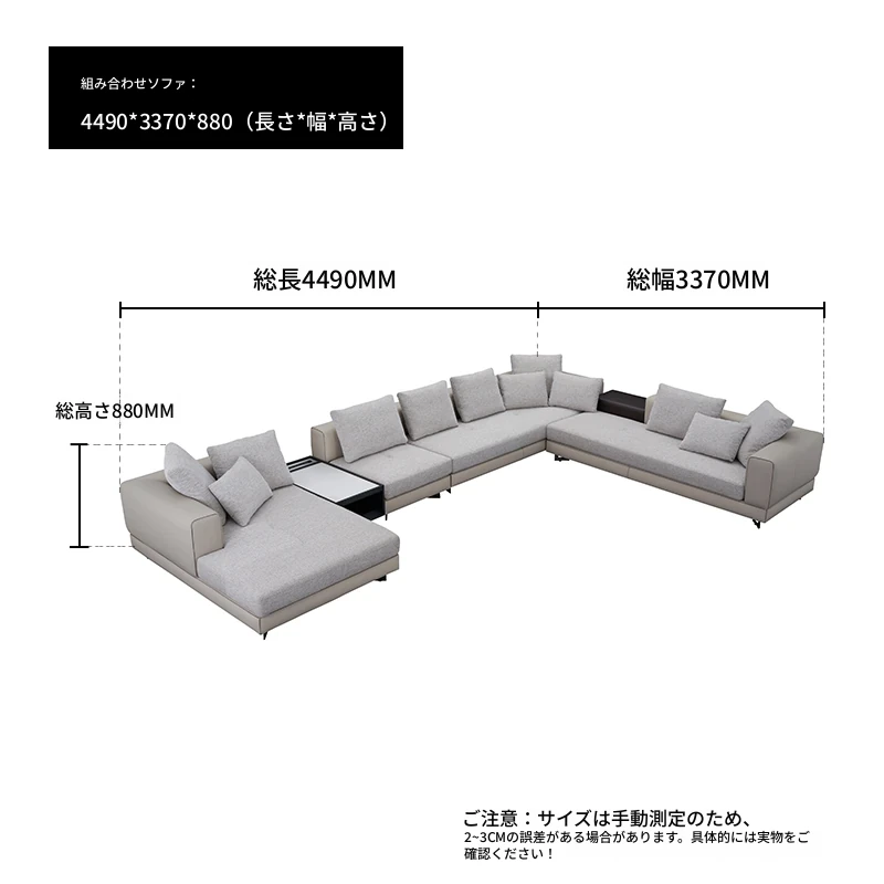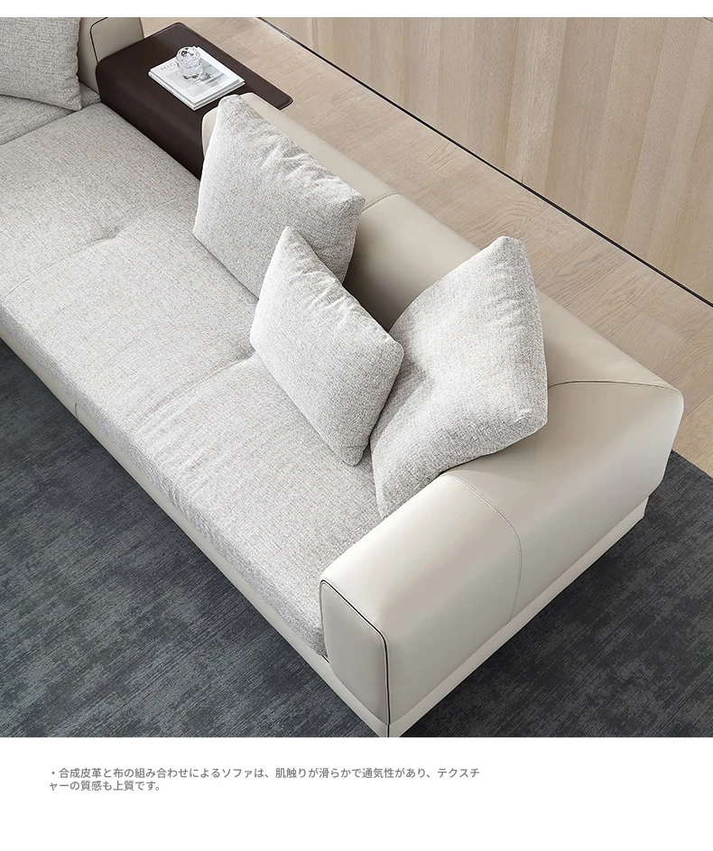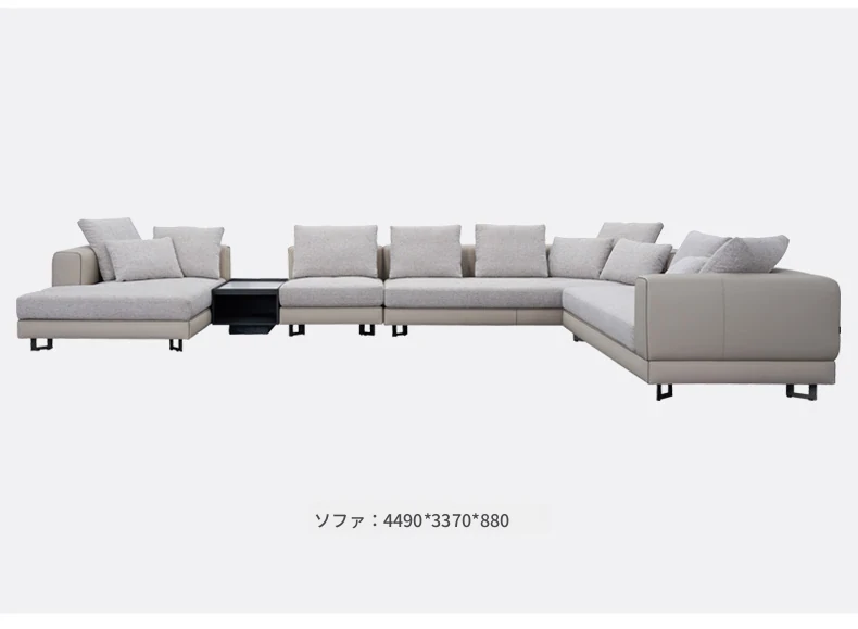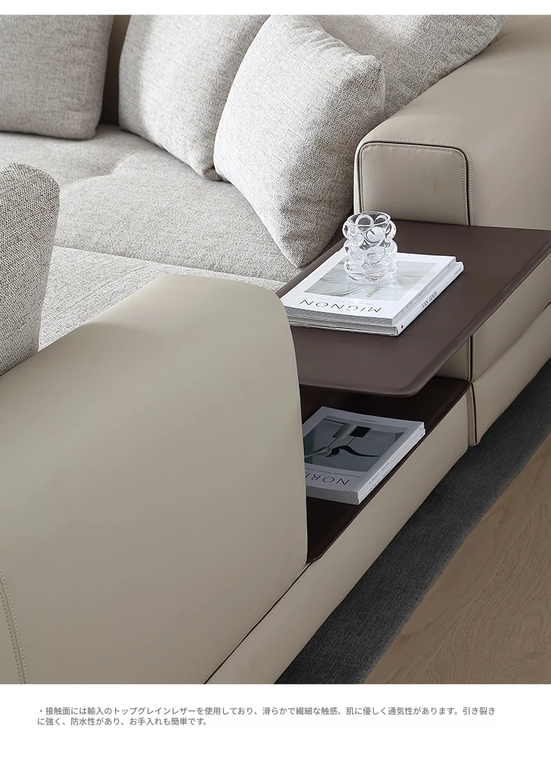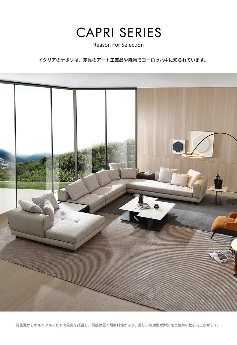 カプリ イタリアンミニマリズム - ソファセット【3人掛け+3人掛け+1人掛け+右カウチ+サイドテーブル】 4490*3370*880