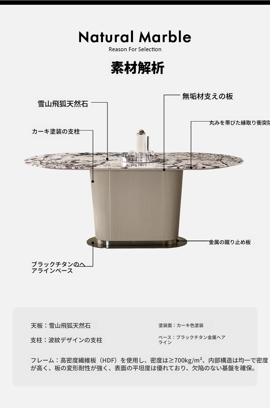 AS厳選カラライタリアンミニマリスト大理石オーバルダイニングテーブル - 高級感あふれる天然石の贅沢な食卓で、洗練された空間を演出します。