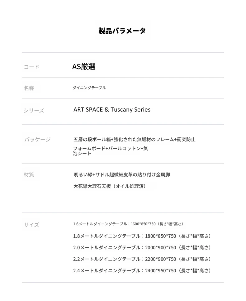 AS厳選TOLKOコラボレーション オリジナル イタリアンナチュラル大理石ロングダイニングテーブル モダンミニマルレザーラグジュアリー石製ダイニングテーブル