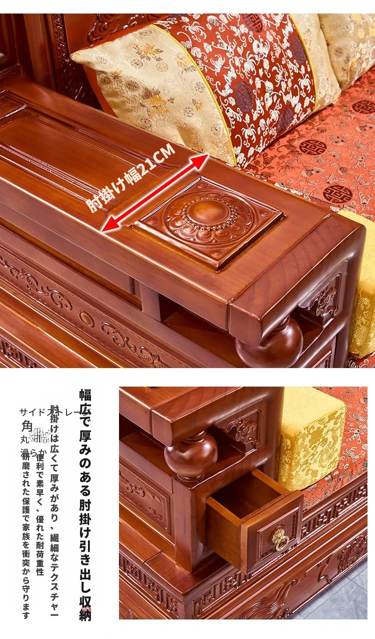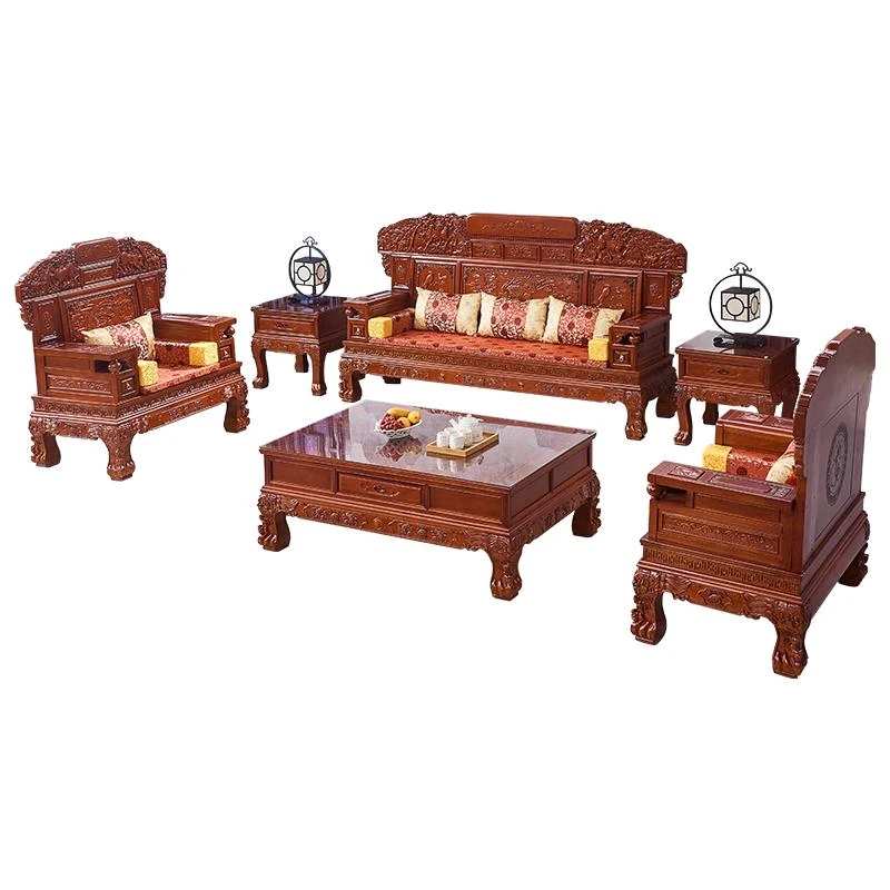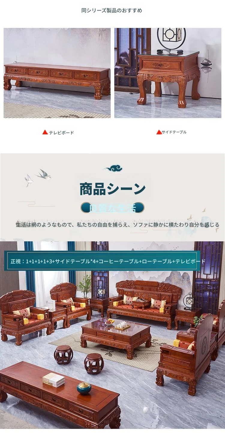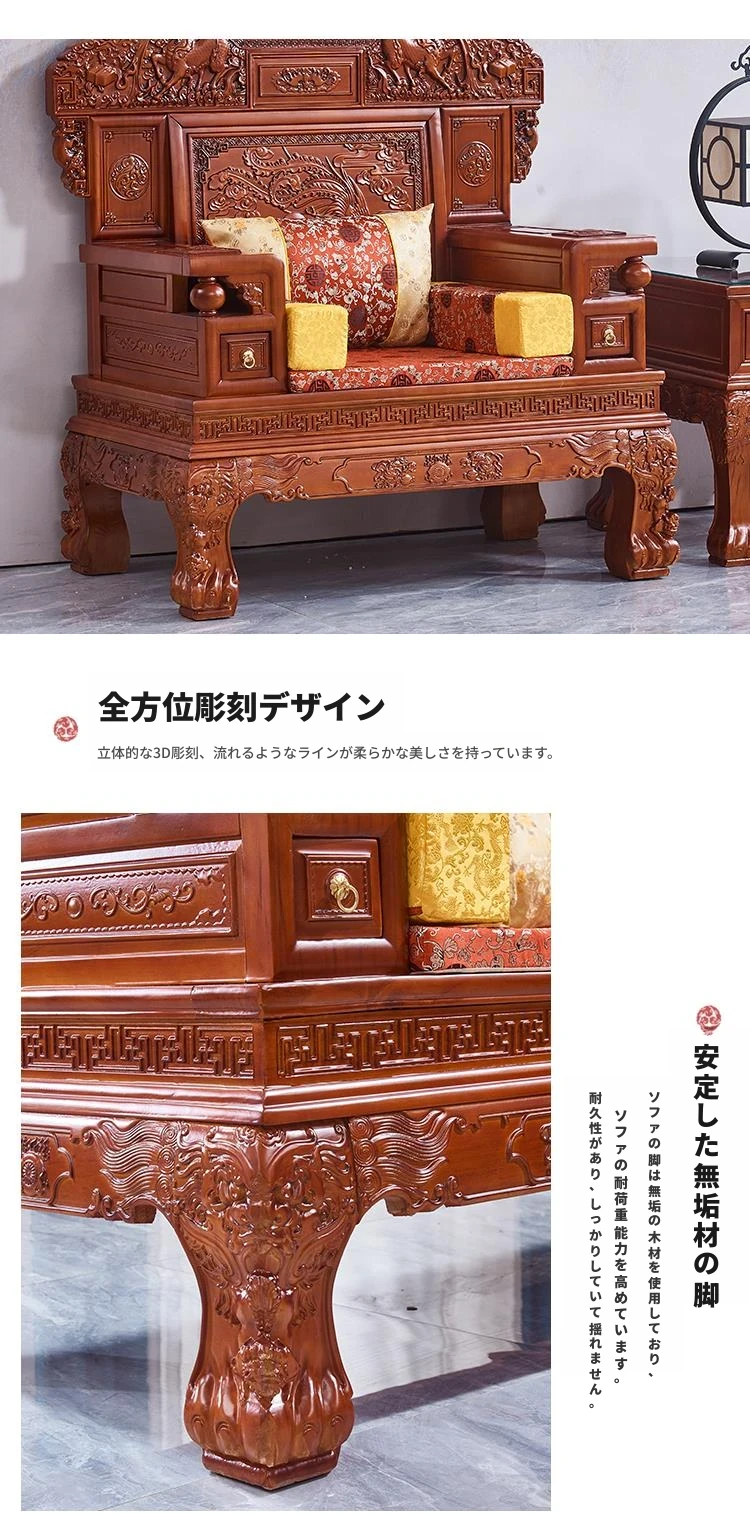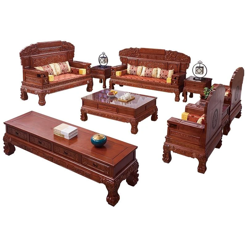 明清風格の伝統的な無垢材ソファセット - 高級紅木使用、古典的な彫刻デザインが魅力的なリビングルーム用フルセット家具。優雅さと温もりを兼ね備えた、あなたの空間を格上げする一品です!