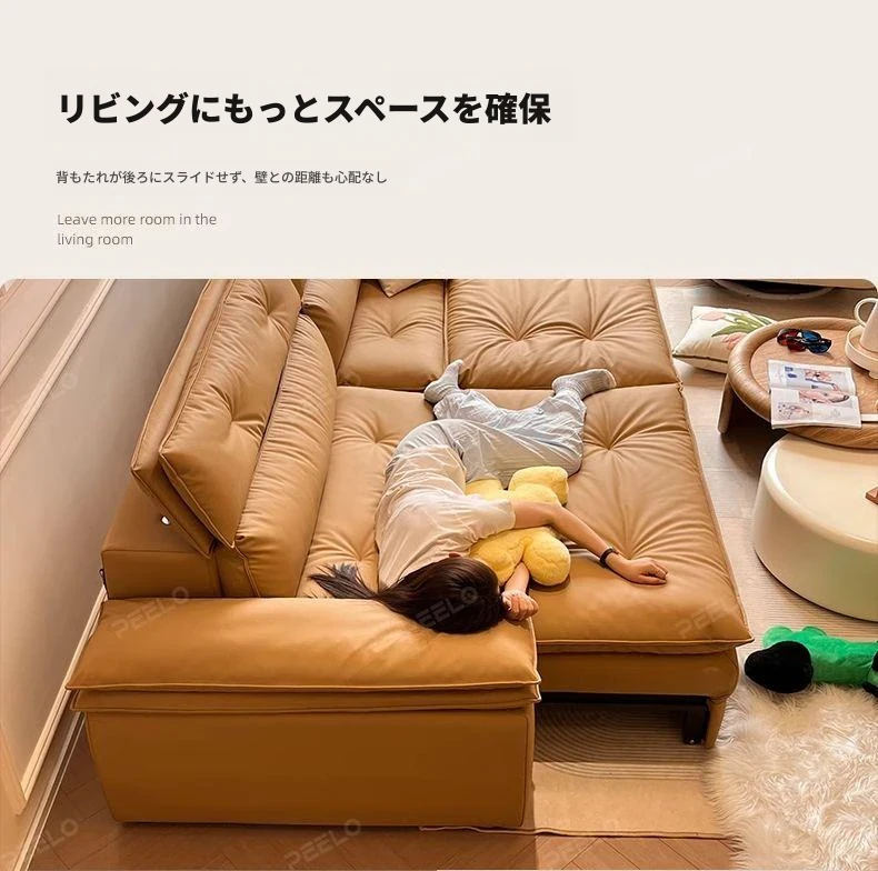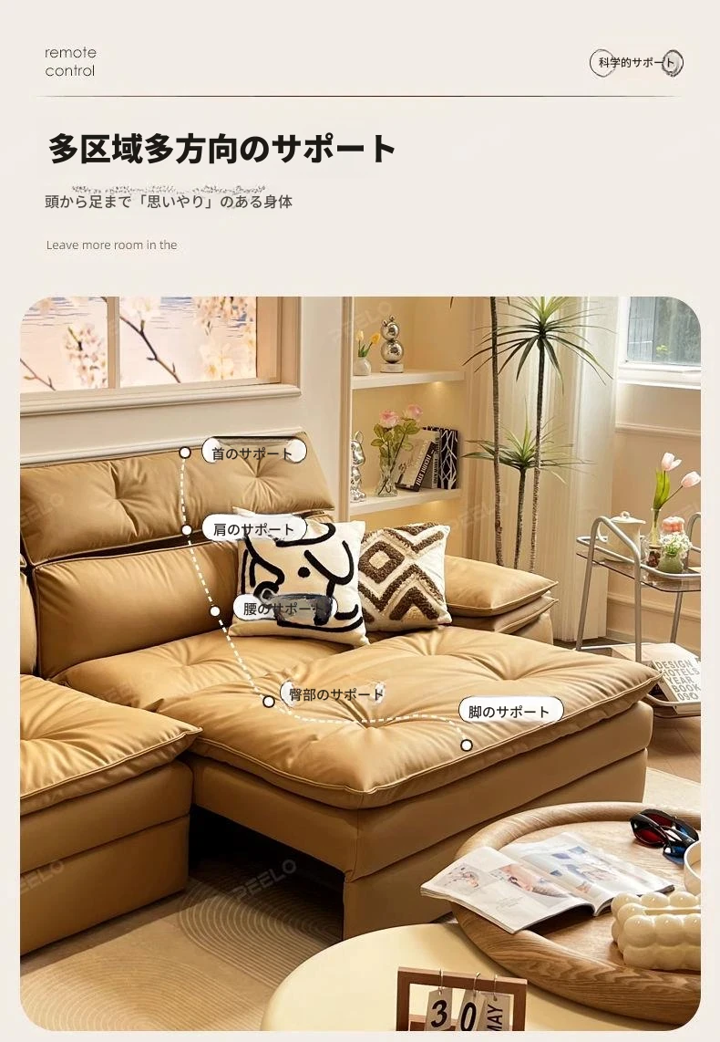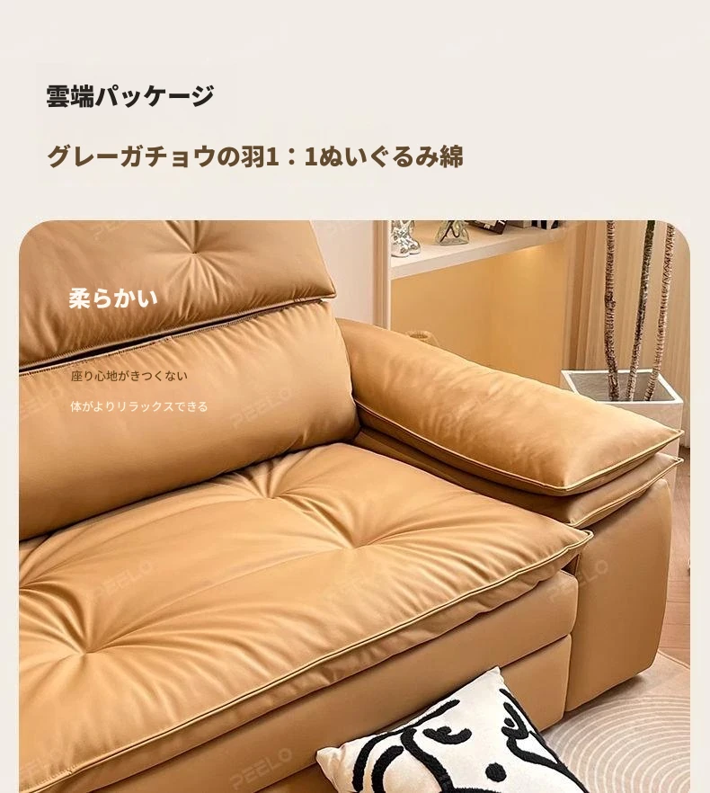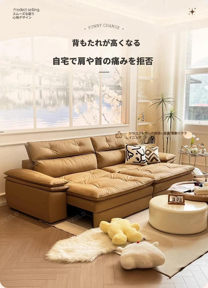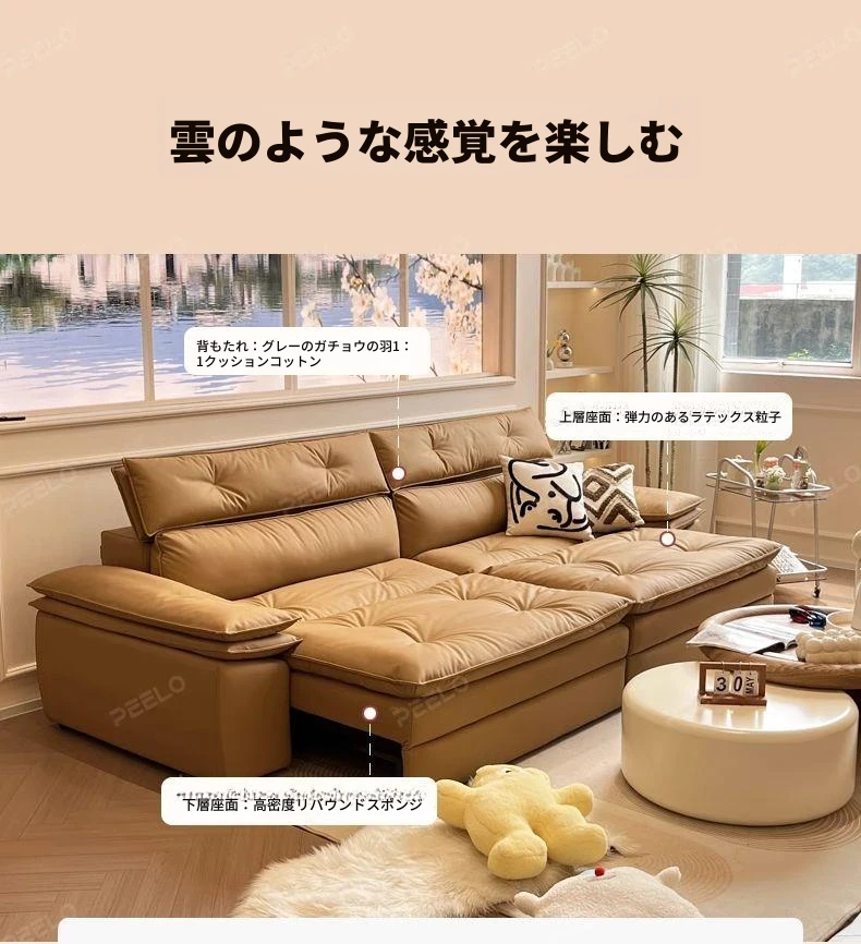 雲のような巨大な機能電動ソファ!クリーミーなデザインのリビングルーム用リモコン伸縮式本革ソファベッド。快適さとスタイルを両立させた理想的な選択!