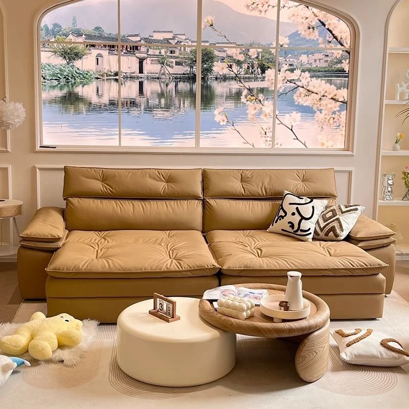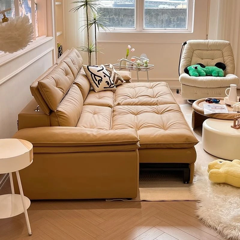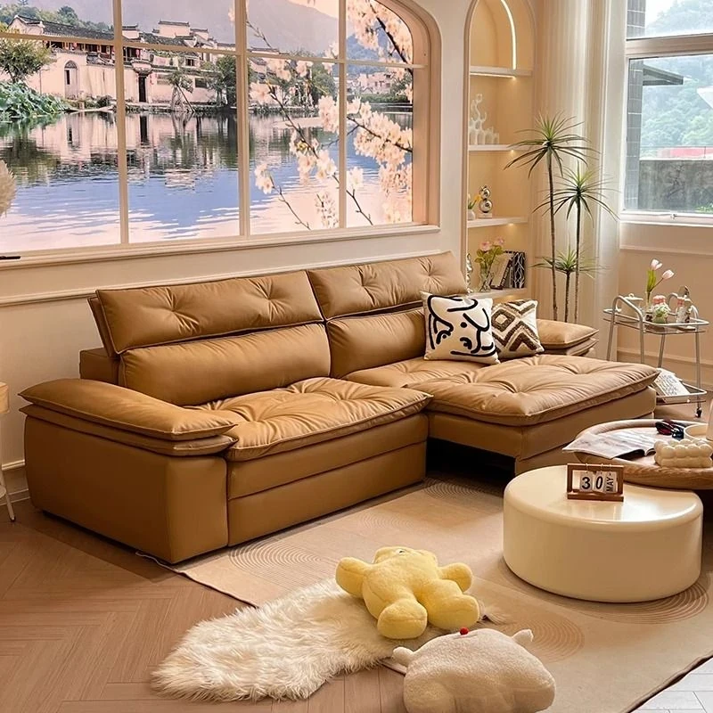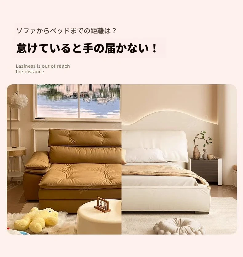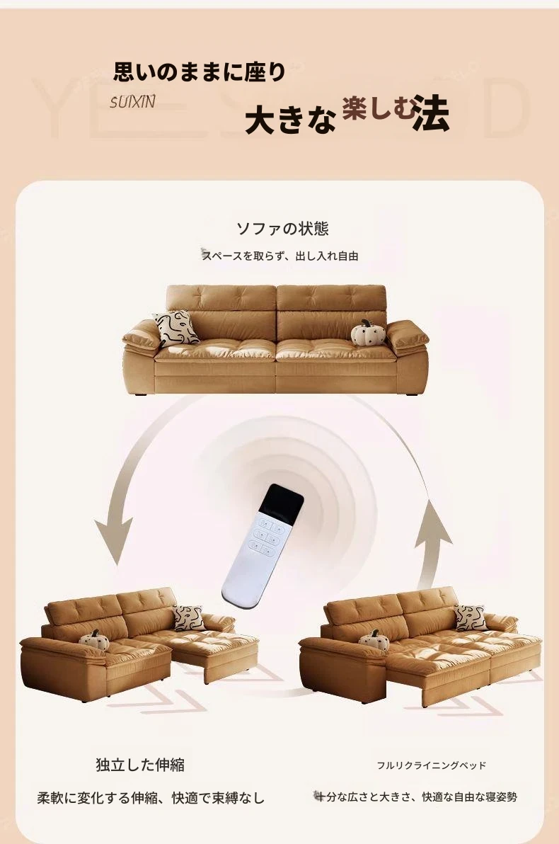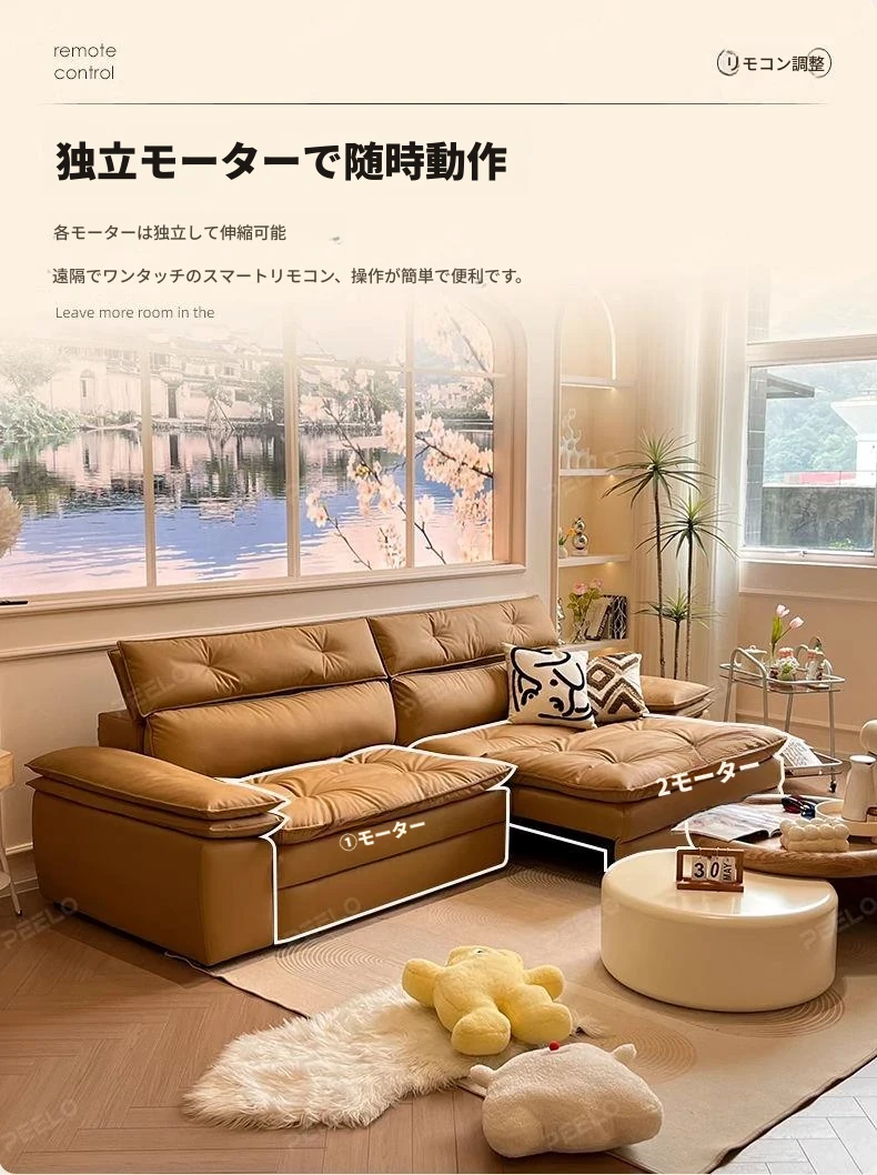 雲のような巨大な機能電動ソファ!クリーミーなデザインのリビングルーム用リモコン伸縮式本革ソファベッド。快適さとスタイルを両立させた理想的な選択!