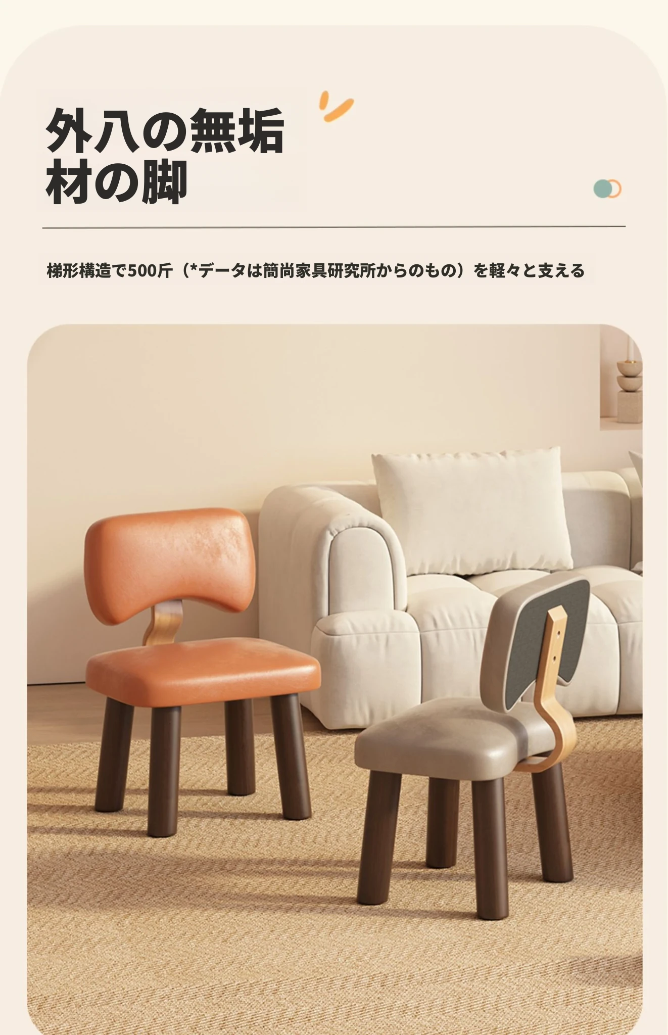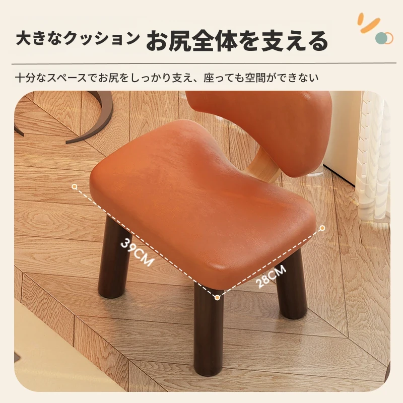 疲れ知らずのミニスツール!リビングにぴったりのソファスツール、ふかふかのクッション付き。背もたれがあって楽に座れる、玄関での靴脱ぎにも最適なシンプルデザインのロースツール。おしゃれで使いやすい!